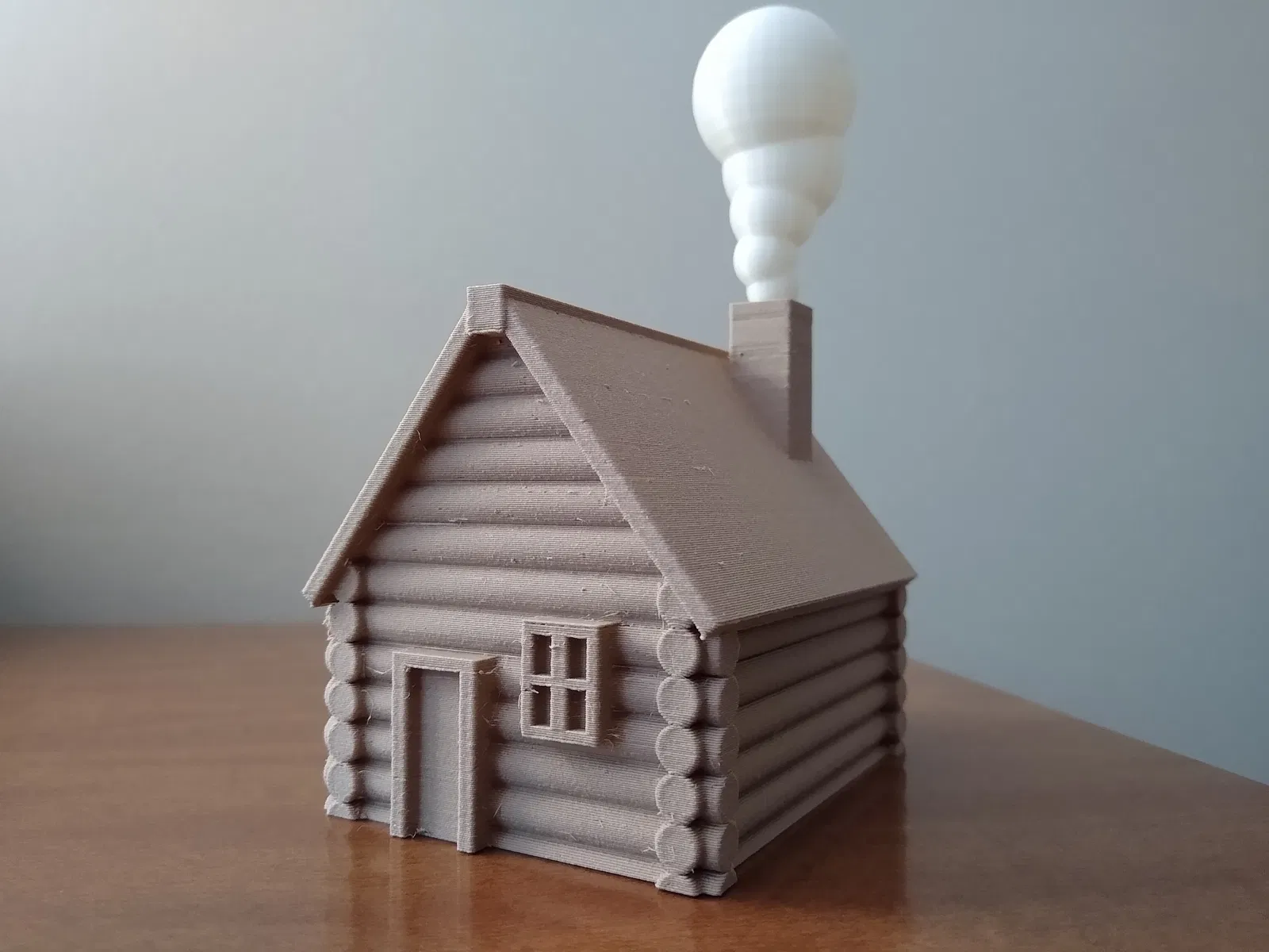 Cập nhật 26/02/2023 - mình làm thêm một phiên bản hơi lớn hơn kèm chút khói ống khói cho vui. File g.code “Larger Log Cabin” đã up được scale để vừa với phần plume khói và đã bật organic supports.