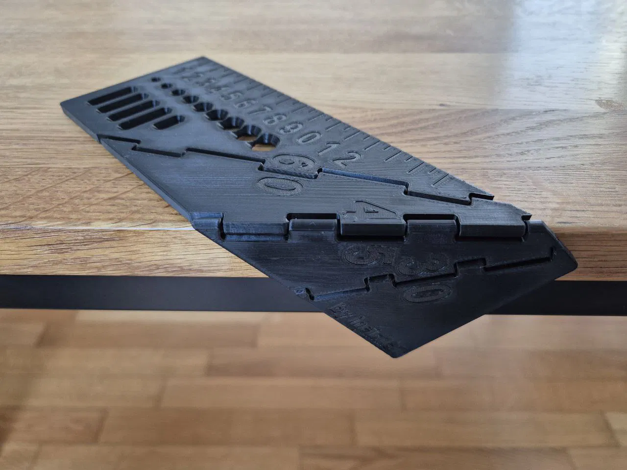 Thiết kế print-in-place này gồm một cây thước có vạch chia hệ metric và nhiều tính năng khác. Các tính năng tích hợp gồm: