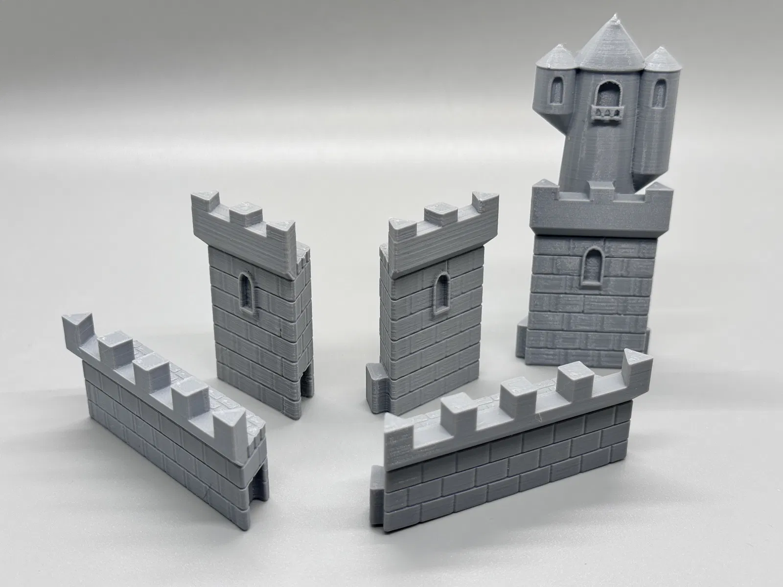 Bạn cần in 3 wall và 3 tower loại male, và 3 wall và 3 tower loại female. Hoặc 3 tower female và 2 tower male nếu bạn định dùng wizard tower. Mình cũng có nghĩ tới việc làm một món có sẵn cả connector male lẫn female, nhưng mình thấy tách riêng male/female sẽ dễ gắn và tháo hơn.