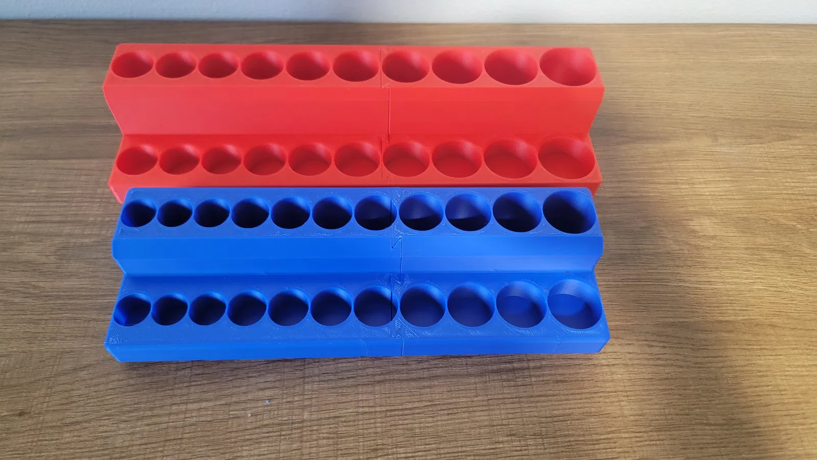 Mình có kèm các file cho khay 3/8" và ½" (drive) dạng chia đôi để có thể in trên bàn in 220mm x 220mm. Nếu bạn dự định in các mẫu dạng split này, mình khuyên rất mạnh là hãy in file “Dovetail Test Print” trước để đảm bảo dung sai (tolerance) của máy in cho phép lắp ráp. Nếu dung sai quá chặt khi in bài test dovetail, bạn sẽ không thể lắp được mẫu hoàn chỉnh. Làm ơn tiết kiệm filament và in mẫu test trước nhé! Nếu bạn không lắp được dovetail test print, bạn nên dành thời gian canh chỉnh (tuning) máy in trước khi in các khay socket. Mình thiết kế với dung sai 0.2mm, nên một máy in được tune tương đối ổn là có thể in thành công. Mẫu dovetail test print cũng dùng như một bit holder, nên in xong vẫn dùng được.