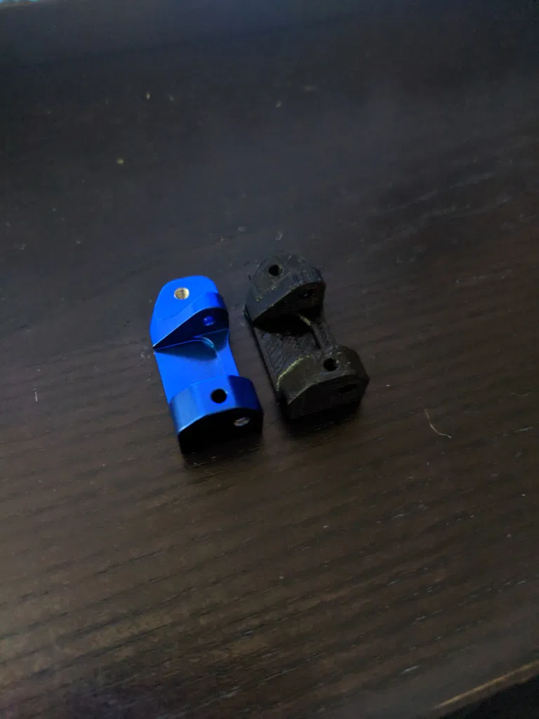 Mình dựng mẫu này dựa theo một cái right caster block mình có sẵn ở nhà. Tất cả lỗ đều nằm trong sai số 0,5mm so với phần zin. Mình đã gắn thử trên Rustler của mình và nó khớp hoàn hảo.