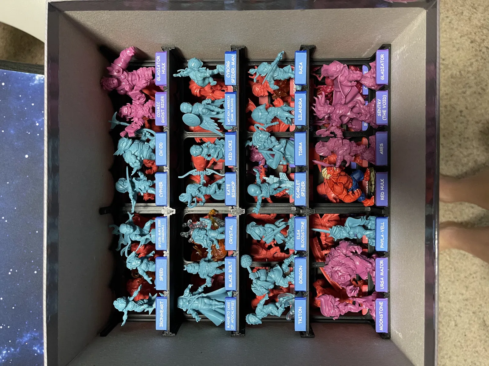 Bản remix insert của TShelley, tối ưu để chứa đa số mini Marvel United Season 3 trong hộp Kickstarter extras. Có chỉnh khay 79x1 cho Crimson Dynamo đế 35mm, kèm Pets Tray và nameplate font mới.