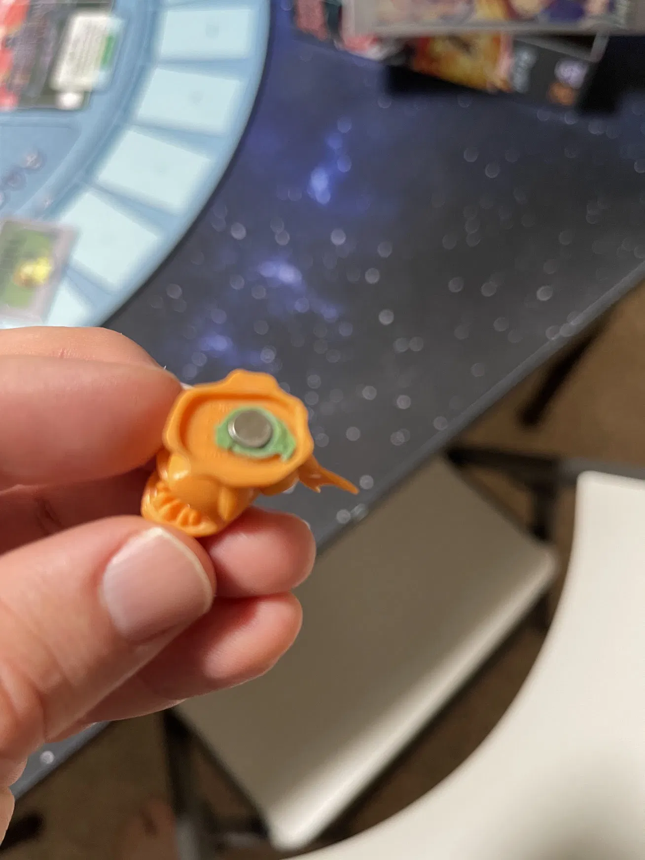 Dùng nam châm 6x2mm và dán keo vô Pet tray. Đồng thời dùng thêm một nam châm 6x2mm nữa, kèm super glue và greenstuff để gắn nam châm thứ 2 vào mặt dưới của con pet. Ý chính là vo một viên greenstuff nhỏ để làm miếng đệm, nhằm canh cho nam châm ở đáy pet nằm đúng mức, phẳng (flush) với mặt dưới của đế. Dán greenstuff vào mặt dưới của đế, chấm thêm super glue vào mặt dưới của greenstuff, rồi dán nam châm lên phần greenstuff đã có super glue. Sau đó ép cả model xuống một tờ giấy nến (parchment paper) để tránh super glue dính vô thứ khác. Rồi để super glue khô và greenstuff cứng lại. Kết quả là bạn sẽ có một cục nam châm nằm phẳng ở mặt dưới con pet.