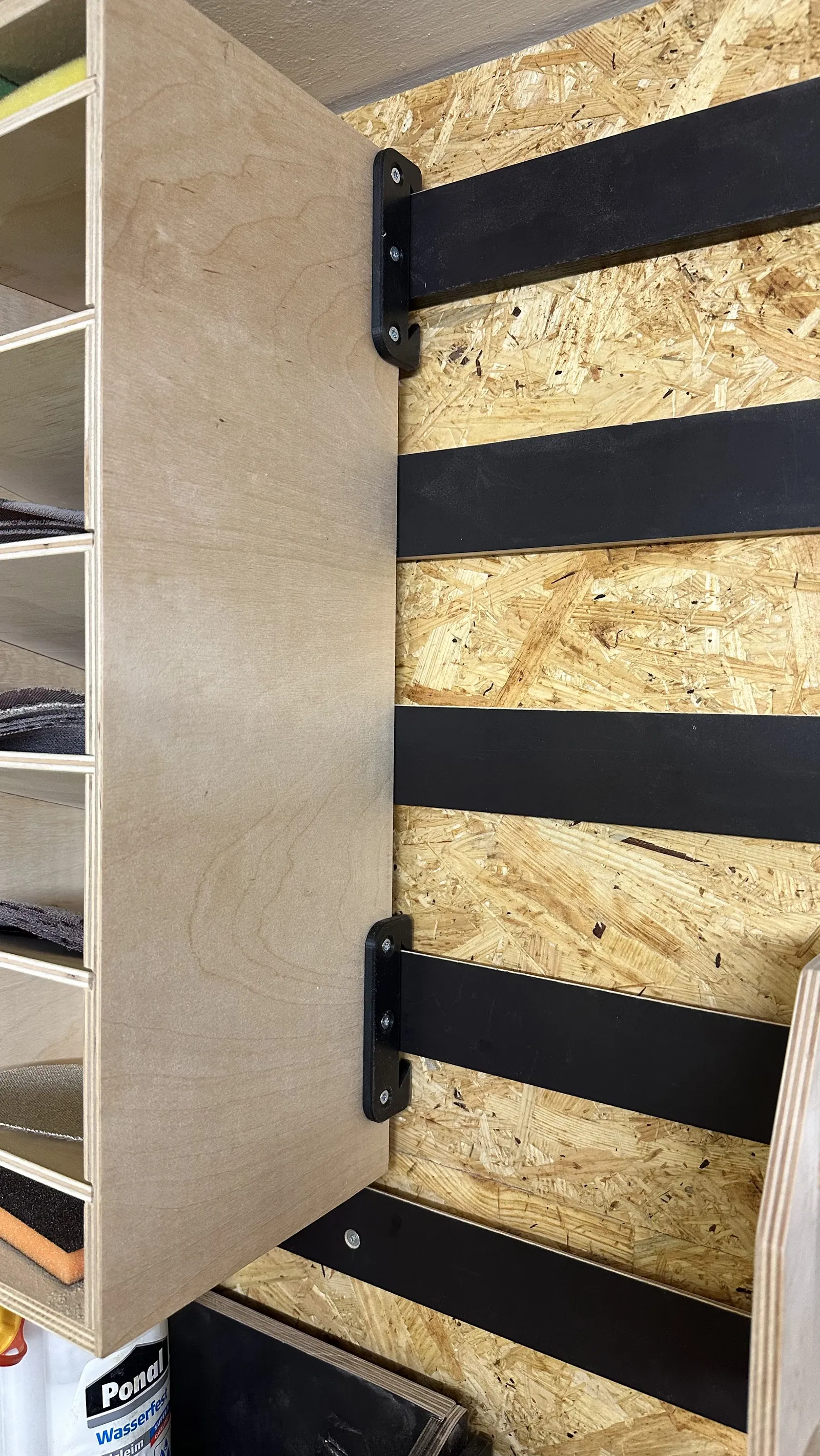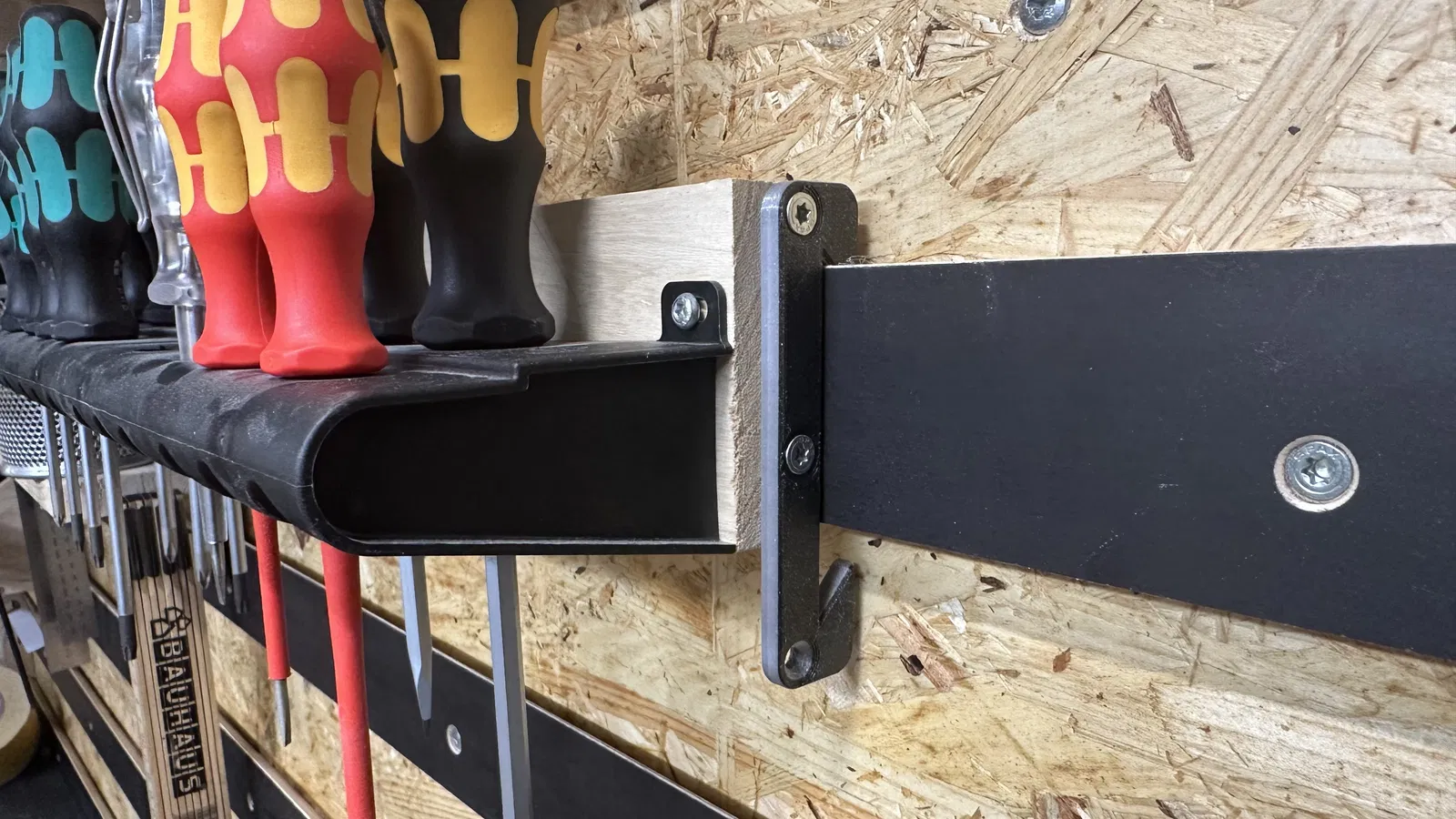Mẫu này dành cho thanh French cleat có độ dày 12mm và chiều cao 50mm. Có thể lắp ở cả hai bên của một giá đỡ. Phần dưới dùng làm điểm tựa vào tường và cũng có thể dùng làm khóa an toàn (key).