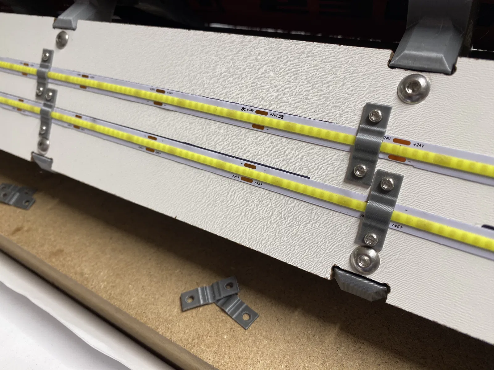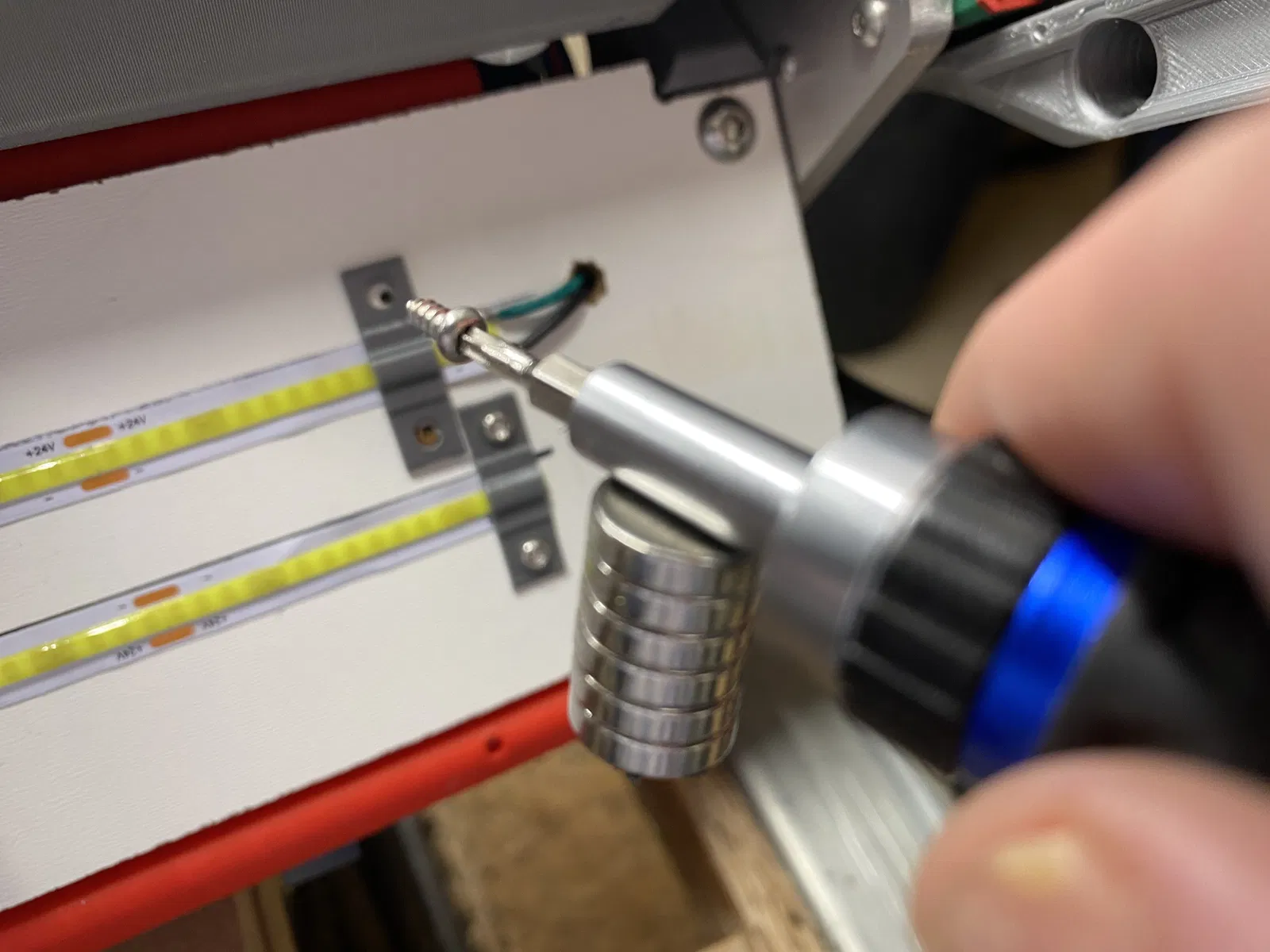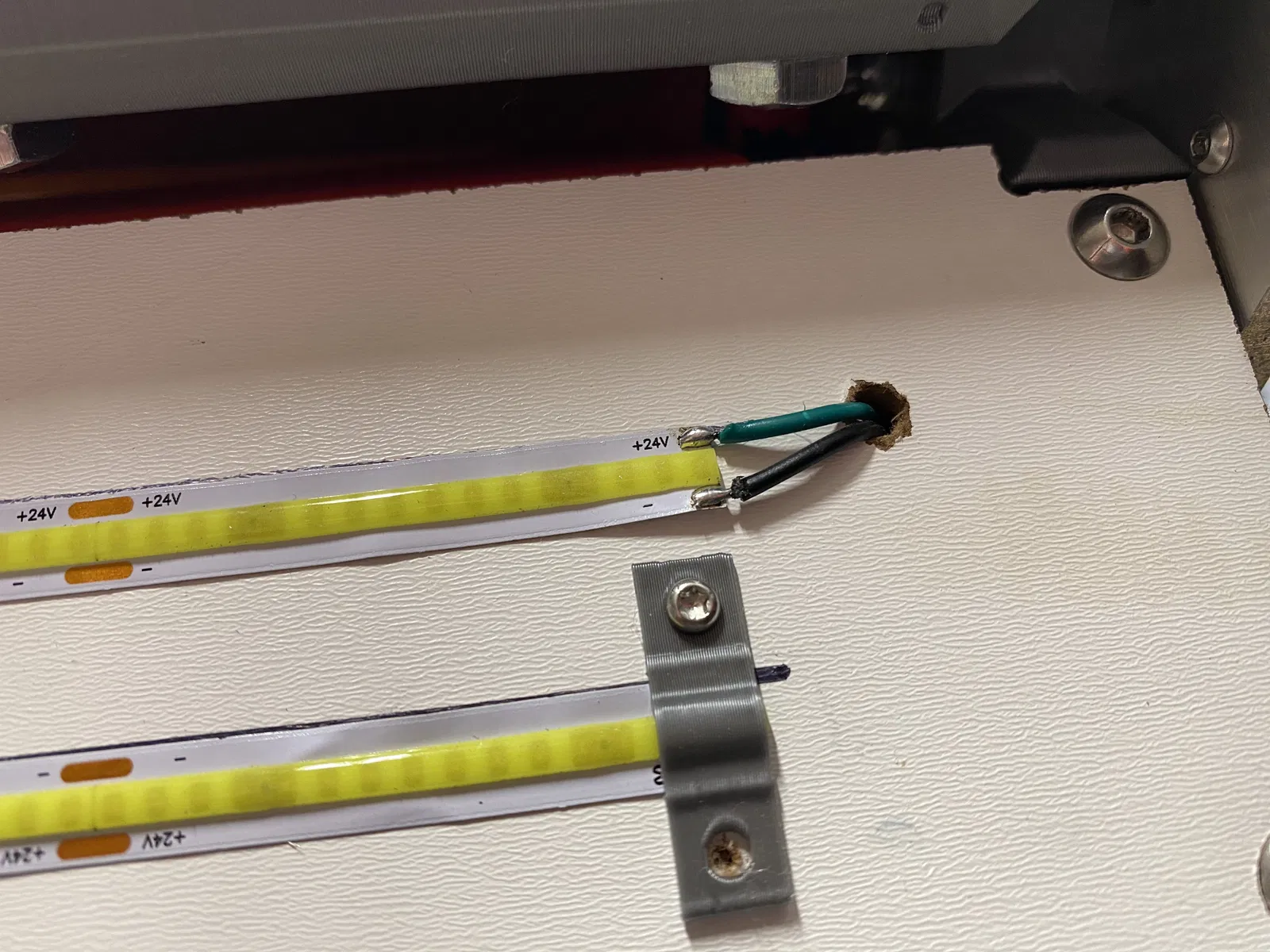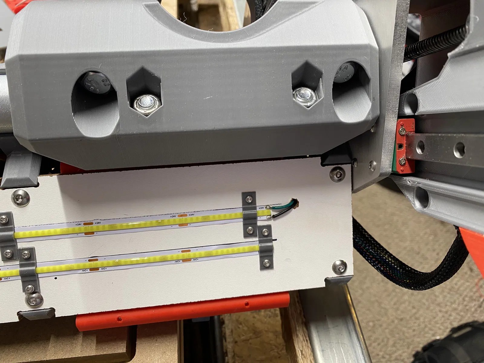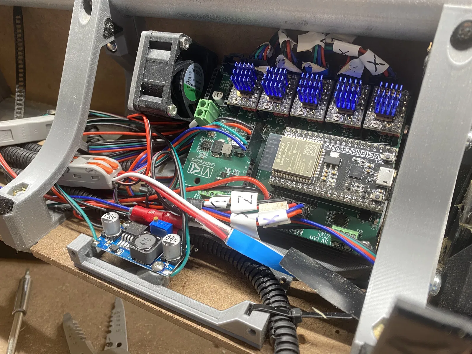 - Mình chừa một vị trí trên mount cho buck converter phòng khi bạn muốn hạ áp (undervolt) đèn 24v, hoặc muốn đổi từ nguồn 24v sang 12v cho các LED khác, hoặc muốn undervolt quạt để êm hơn, hoặc cần lấy 12v từ 24v cho quạt, v.v. Nếu bạn không cần buck converter thì để chỗ đó cũng không sao.