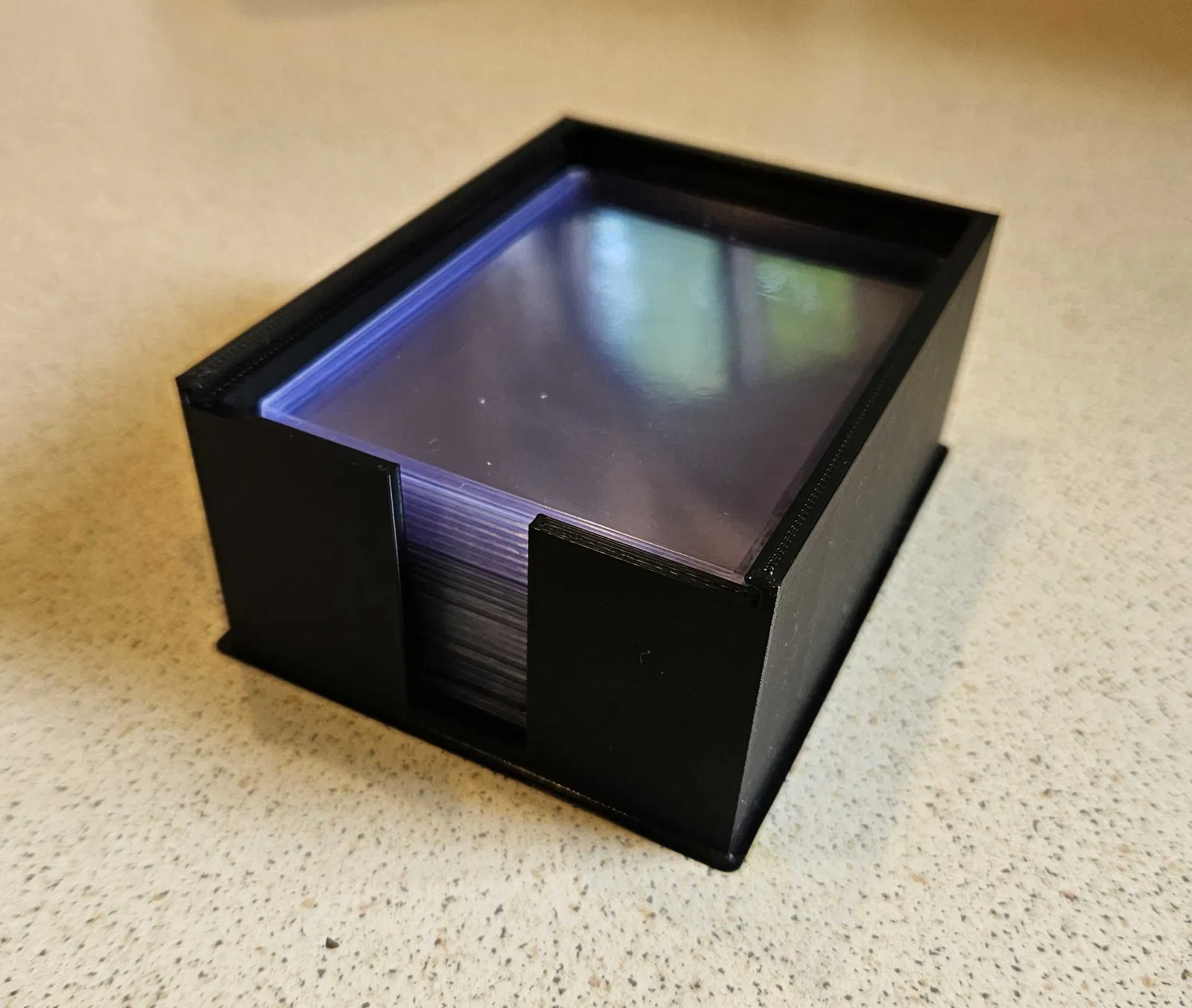 Hộp lưu trữ cho 25 toploader. Model có một phần khoét ở mặt trước để dễ lấy sleeve ra và nhìn được còn bao nhiêu cái đang nằm trong hộp.