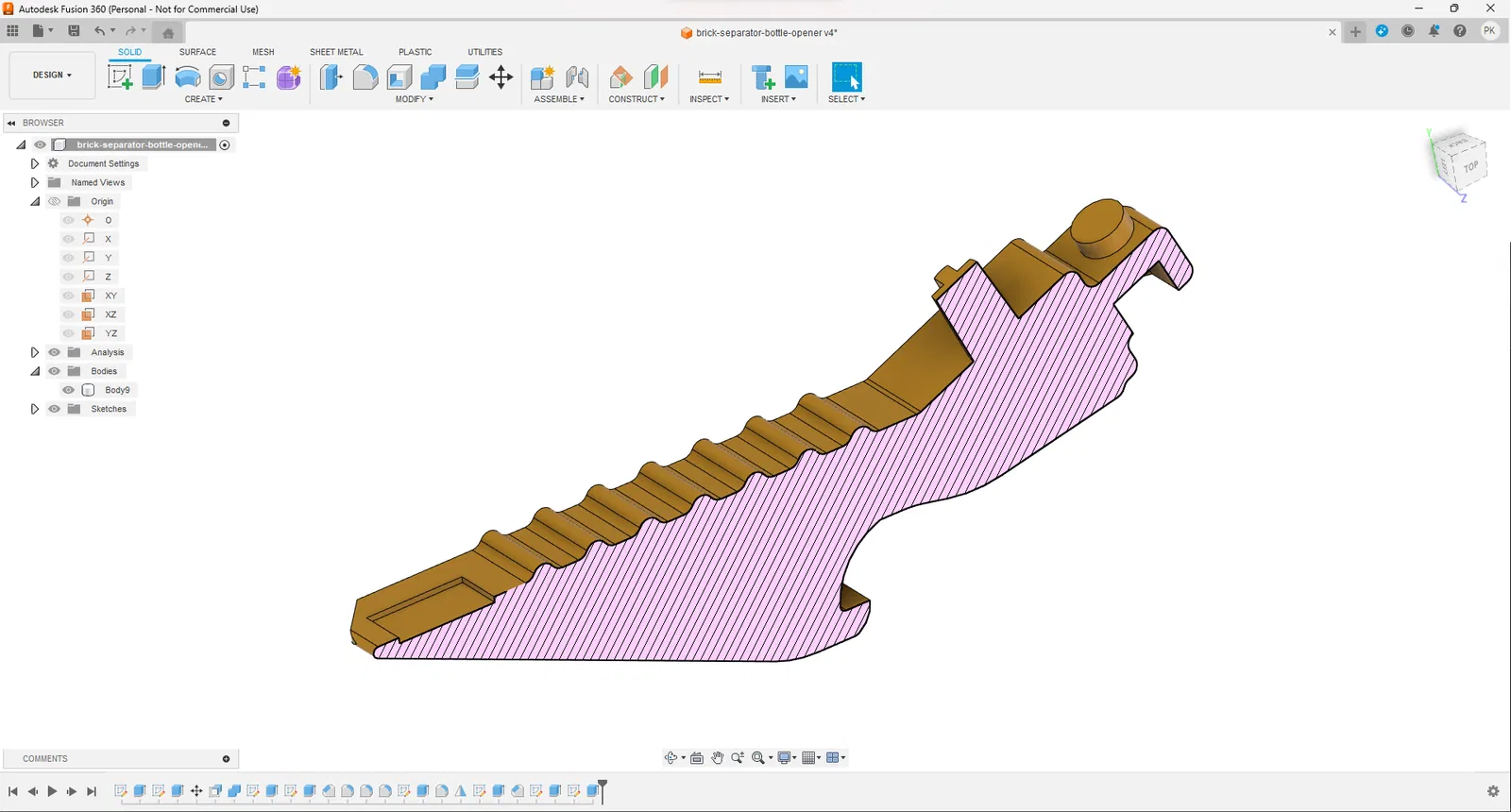Mẫu LEGO Brick Separator/Bottle Opener: dụng cụ tách gạch LEGO kiêm mở nắp chai, in PETG không cần support khi đặt nghiêng. Có kèm file .step và .3mf để remix/chỉnh sửa.