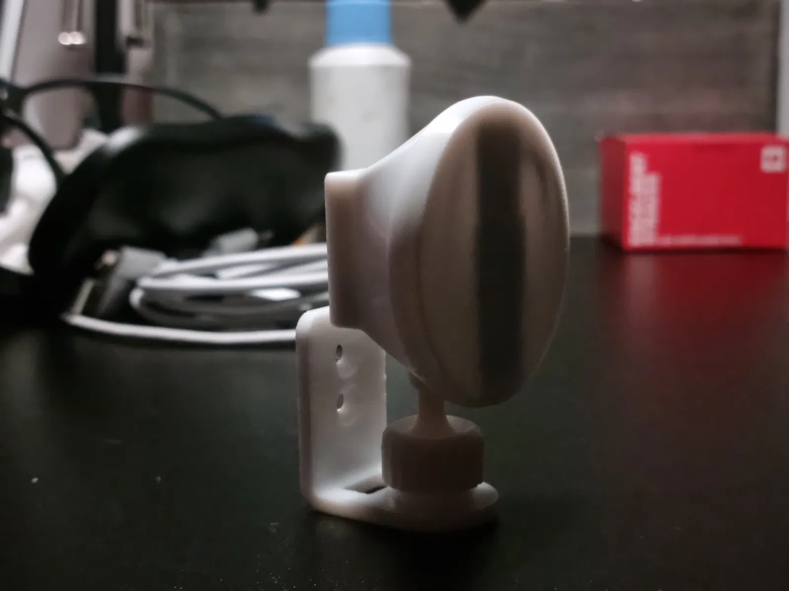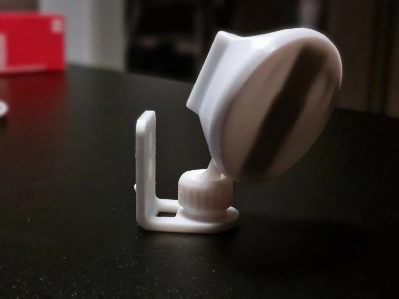 Giá đỡ gọn cho ESP32-C3 Mini và cảm biến LD2450, có đế tròn xoay chỉnh hướng để tối ưu vùng phủ. Tay chữ L có lỗ bắt vít, phù hợp lắp tường/trần cho dự án domotics, theo dõi chuyển động, DIY.