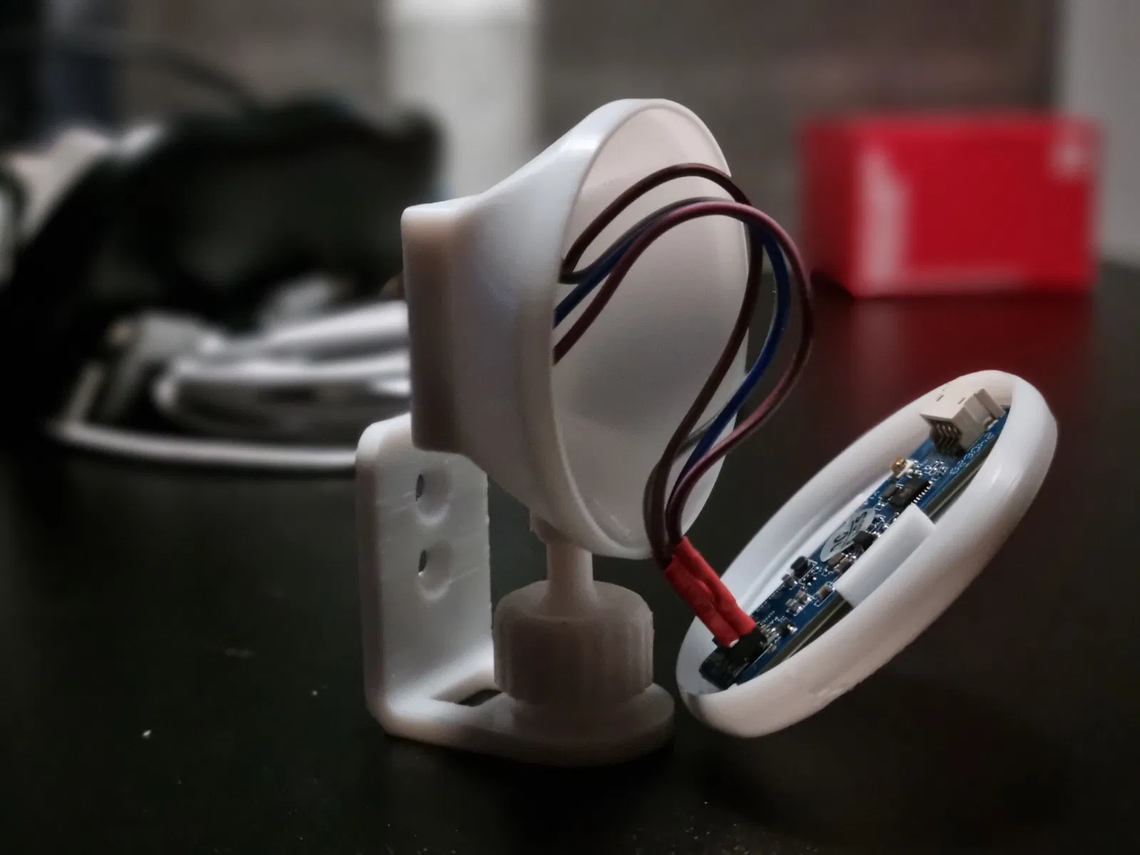 Cái ngàm/giá đỡ này được thiết kế để lắp ESP32-C3 Mini chung với cảm biến LD2450 theo kiểu gọn gàng và hiệu quả. Thiết kế có phần đế tròn có thể chỉnh, kèm cơ cấu xoay giúp canh hướng cảm biến chính xác, đảm bảo vùng phủ tốt nhất cho các dự án phát hiện hiện diện hoặc theo dõi.