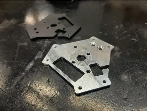 Đây là tấm nền, được thiết kế ngược qua Dự án Q5 của tôi. Tôi đã gia công CNC cái này bằng nhôm để giảm trọng lượng và cải thiện khả năng tản nhiệt.