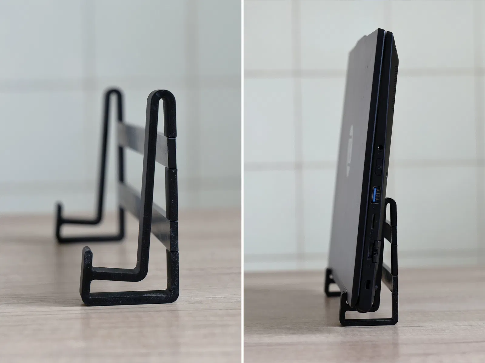 Kệ để laptop/notebook theo chiều dọc, tiện cất máy cạnh bàn khi dùng usb-dock. Thiết kế gồm 2 chân và 2 thanh nối snap-fit chắc chắn, giúp máy gọn gàng và thoáng gió tản nhiệt. Tối ưu cho notebook 15".