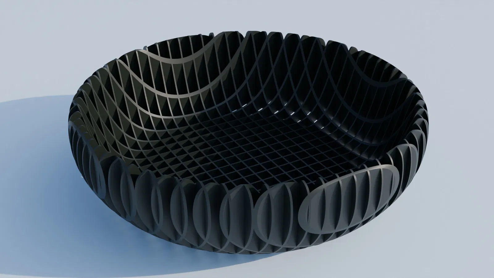 Mẫu tô/bát in 3D với họa tiết ô vuông giao nhau tạo hiệu ứng nhìn xuyên khi nhìn từ trên xuống. Vừa đẹp để trang trí, vừa tiện để đựng đồ hoặc bày snack. Dễ in, hợp PLA/ABS, ít cần support.