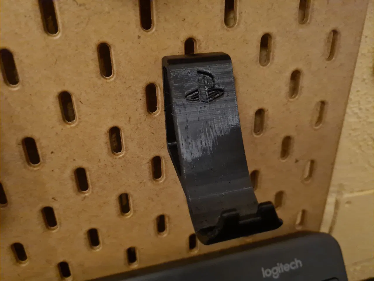 - Gợi ý in 3D: Nên in theo chiều ngang, phần móc gắn vào bảng Skadis và phần đỡ phía trước có thể cần hỗ trợ (support). Phần logo Playstation không cần support.