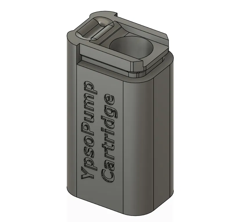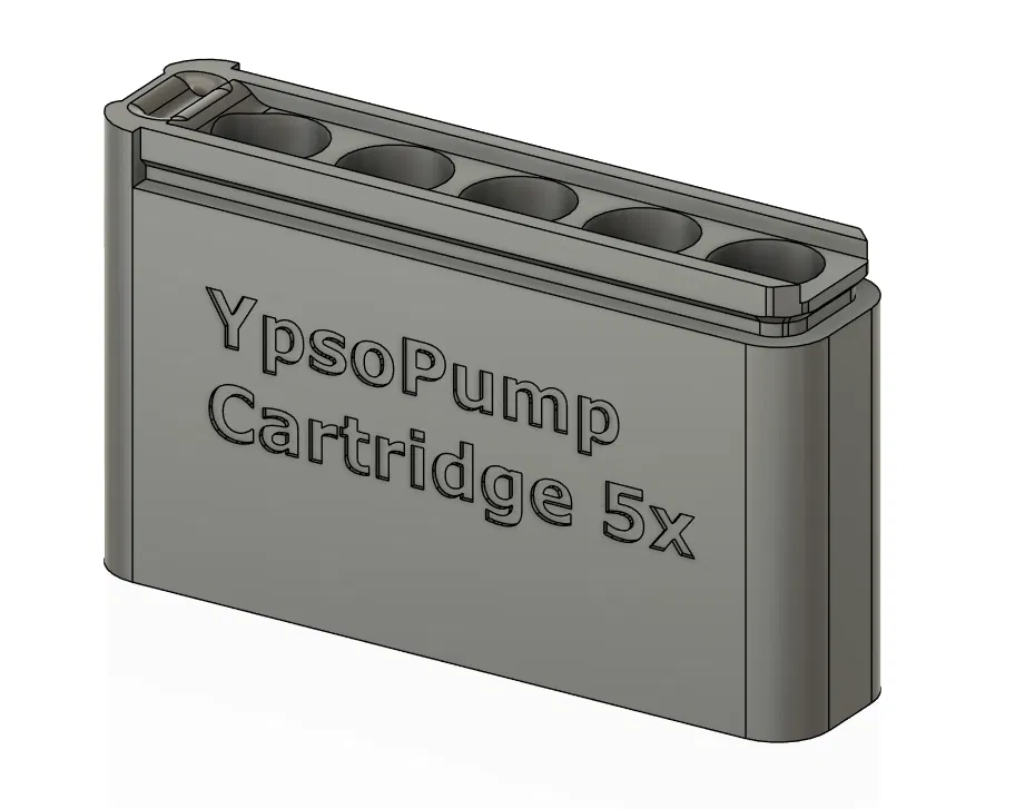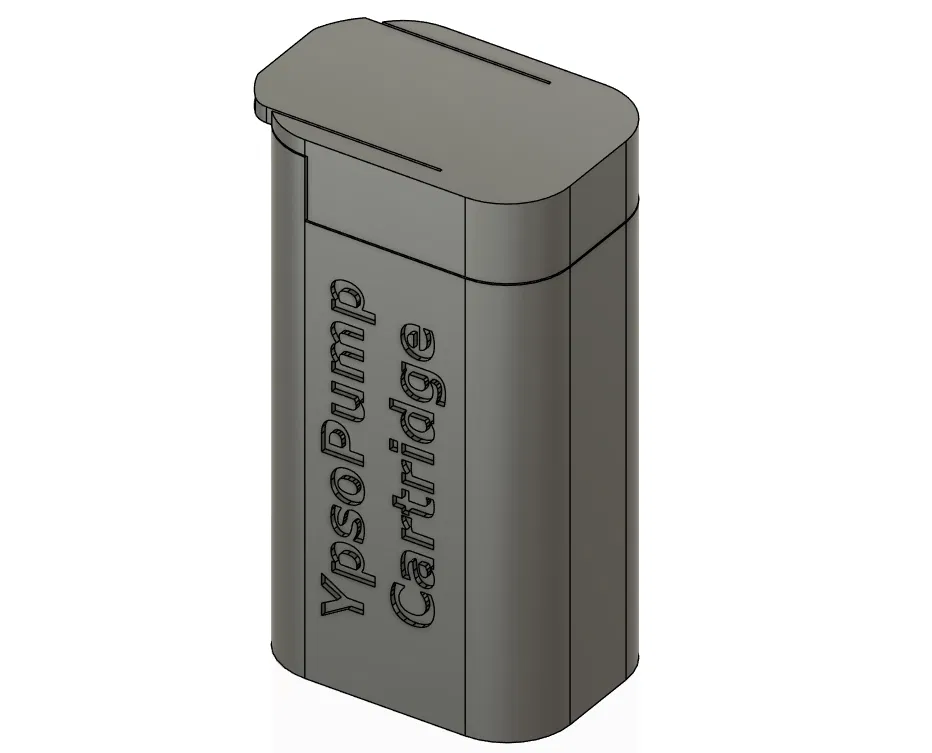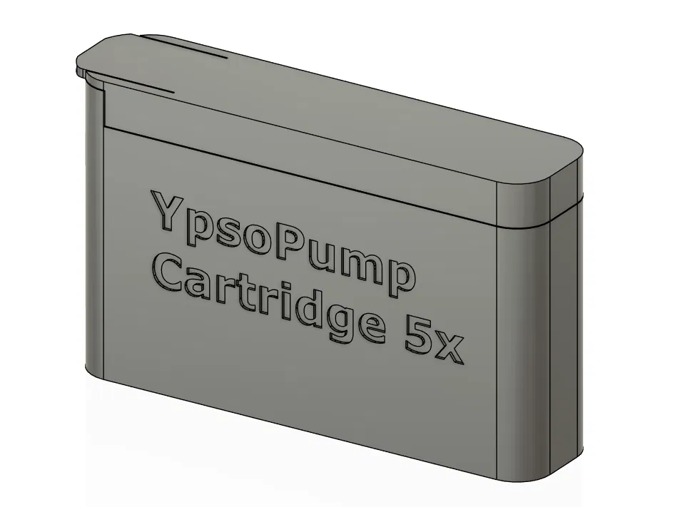 Bộ travel case cho vial thay thế của bơm insulin YpsoPump, kèm hộp dạng ống cho “key” dùng khi di chuyển. Khuyến nghị in PETG với 3 perimeters, 20% infill; hộp ống cần chấm keo dán nhanh ở một bên ren.
