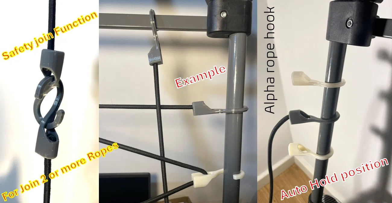 Alpha rope hook là móc dây và móc bắt vít đa năng, tối ưu hình học để cứng mà tiết kiệm vật liệu. Test tải tĩnh 18 kg, hỗ trợ ABS/PETG và khuyến nghị PC/gia cường. Dùng cho ống 21–24 mm, có thể scale.