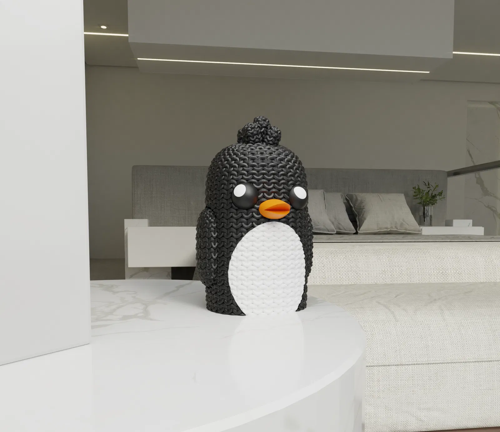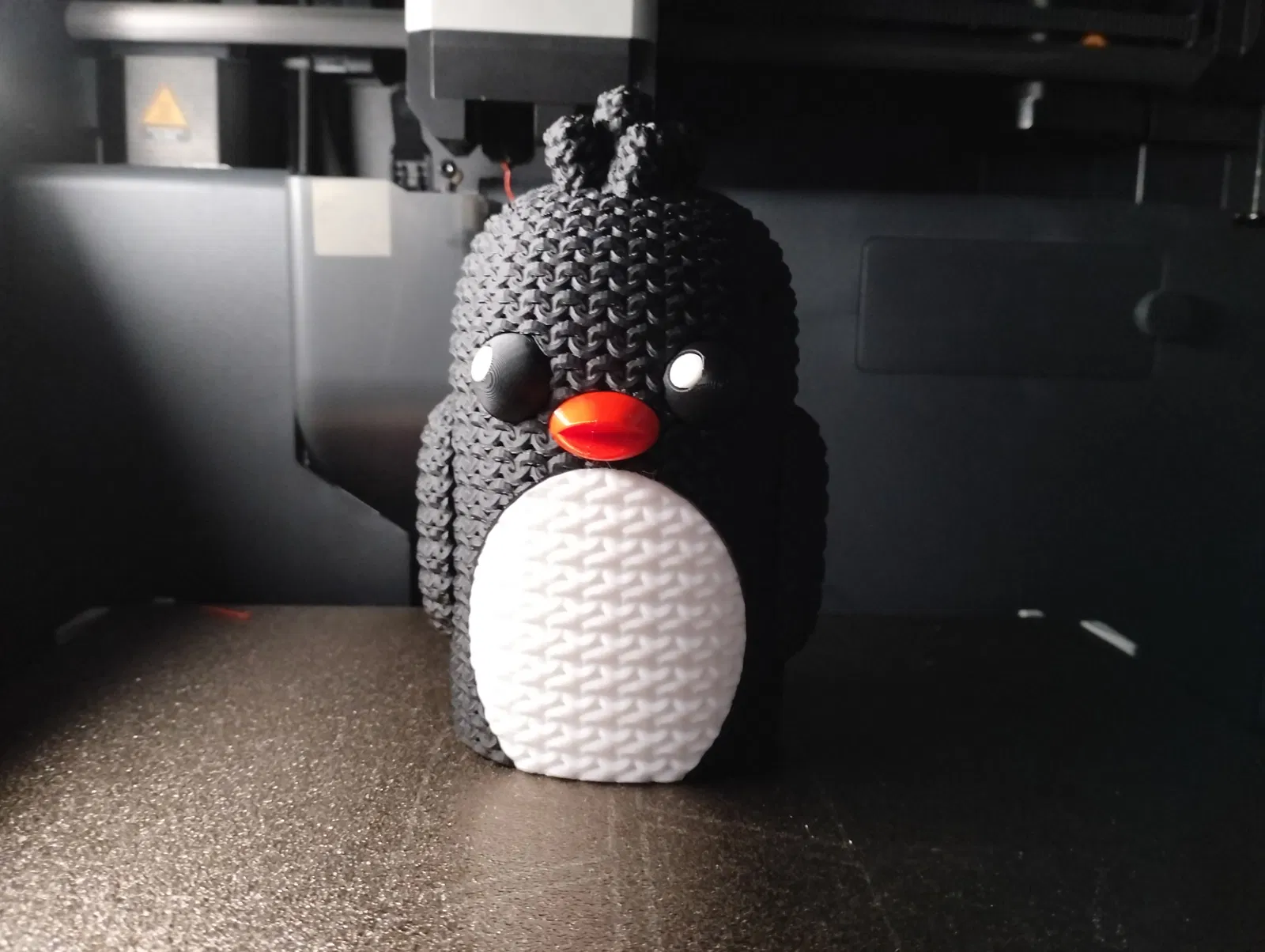 Mẫu chim cánh cụt dễ thương phong cách đồ đan len, hợp trang trí mùa đông hoặc làm quà. Thiết kế tối giản, bề mặt mô phỏng sợi len. Các phần được chuẩn bị để ghép không cần keo, nhưng mắt có thể hơi lỏng tuỳ filament.