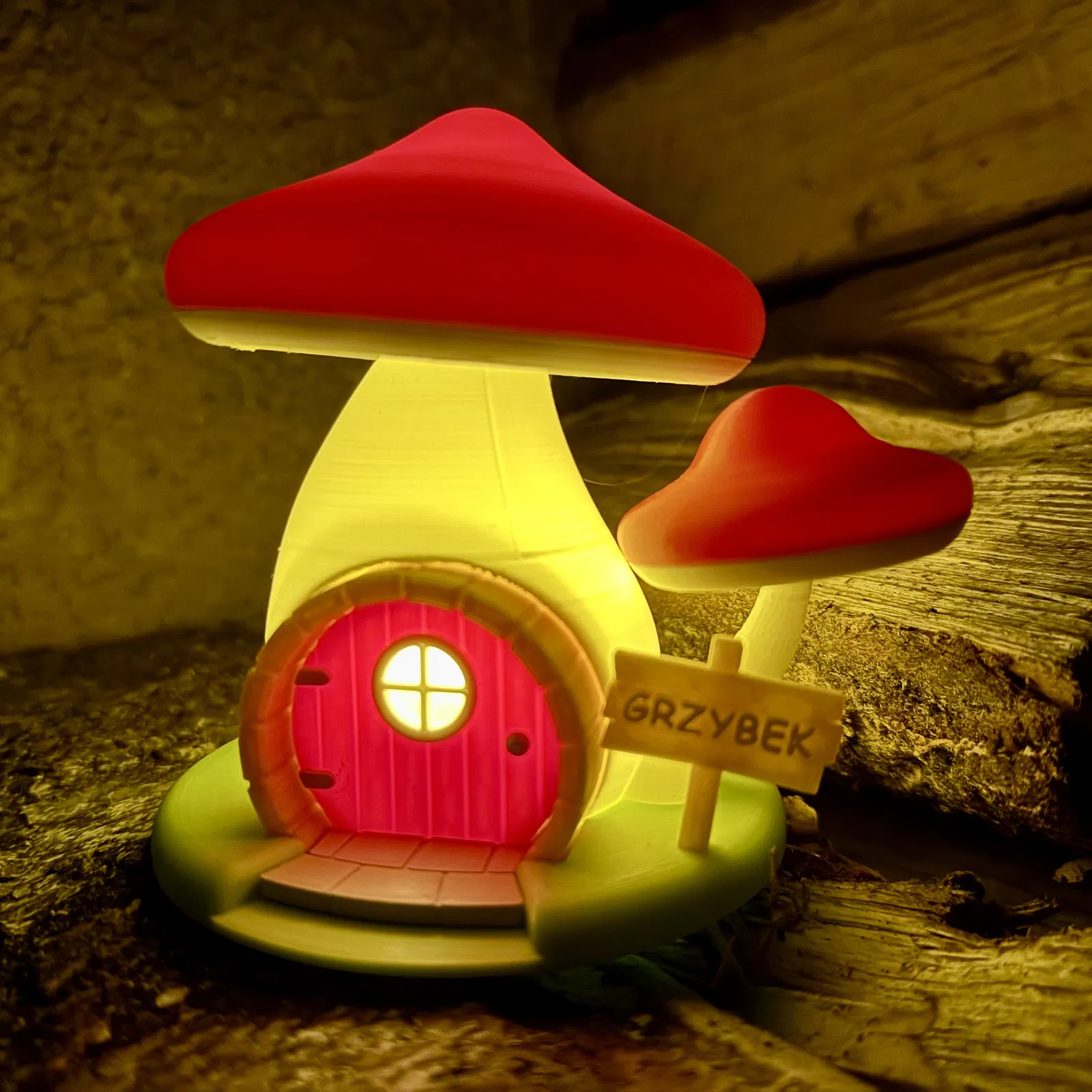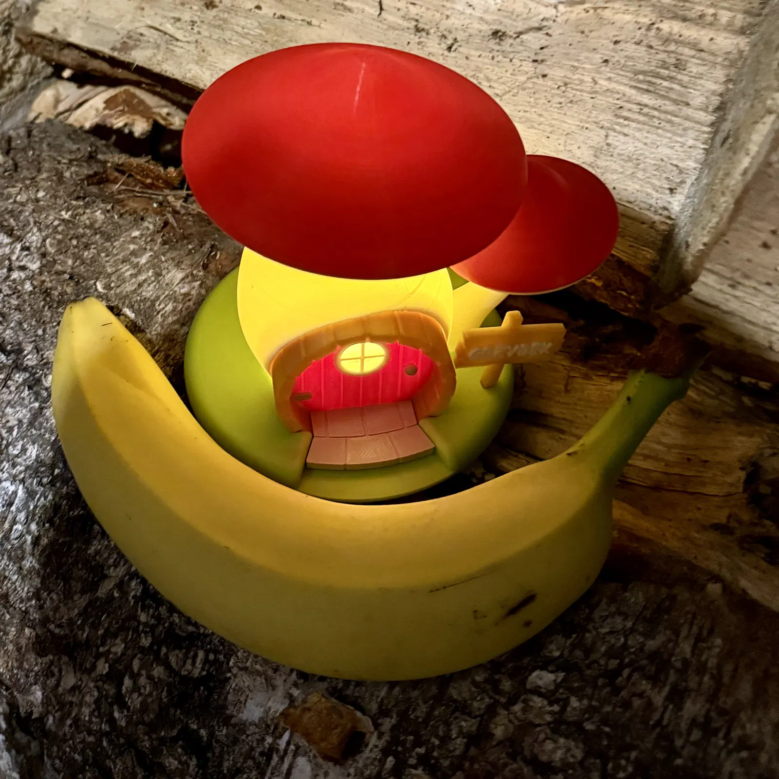 Nhà nấm cổ tích cho Christmas Village, phù hợp đặt LED tea light để phát sáng ban đêm. Mô hình tách rời từng phần, in được không cần máy đa màu (AMS/MMU) và gần như không cần supports; khuyên dùng brim cho phần thân.