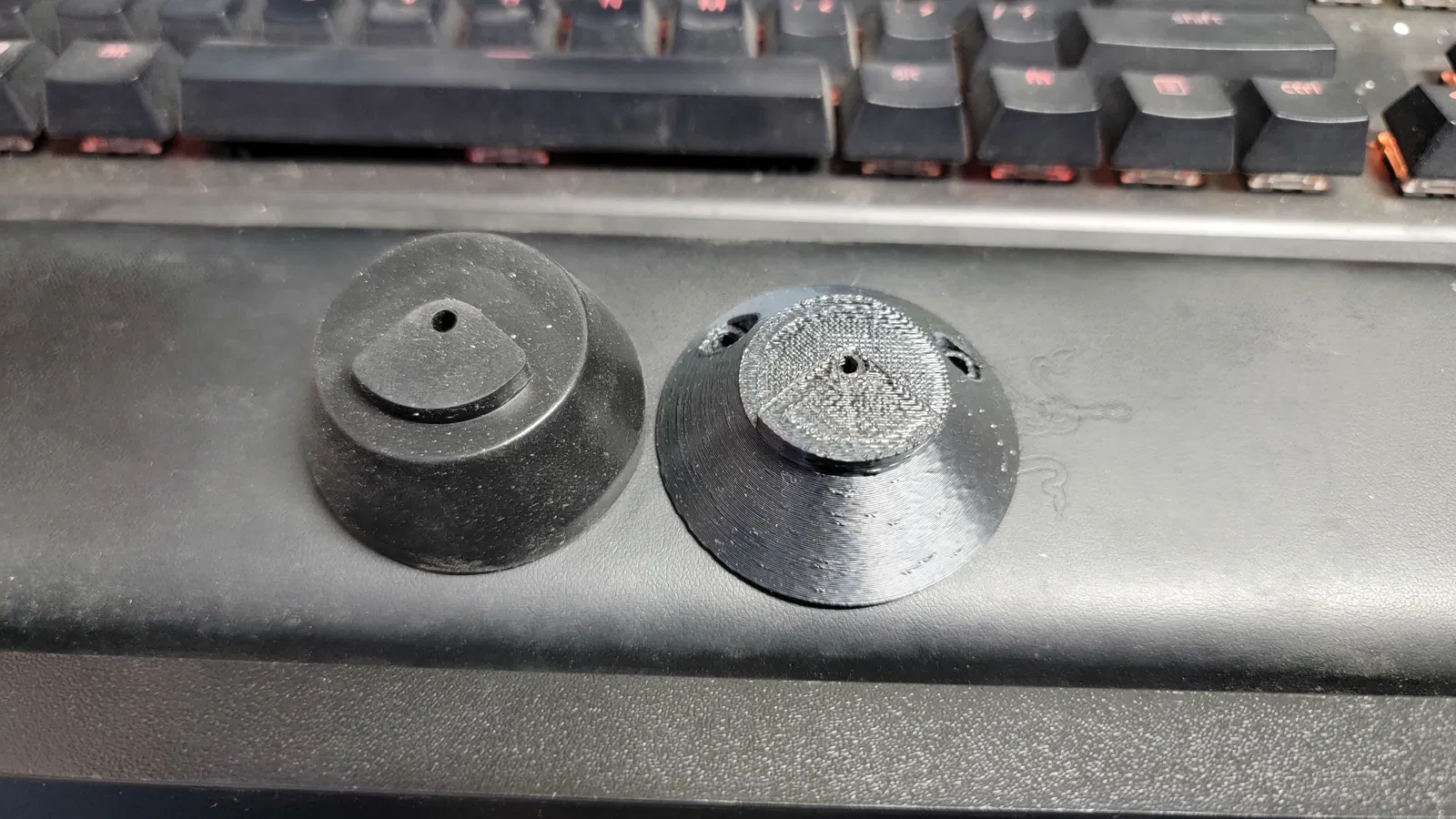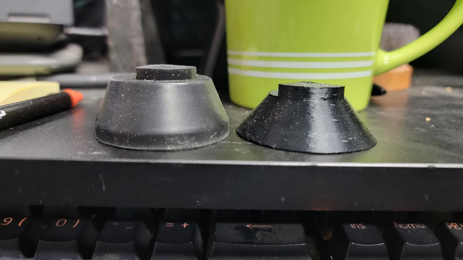Mình để ý cái K1C của mình bị rung lắc khá nhiều khi dùng mấy cái chân cao su mềm đi kèm theo máy, nên mình thiết kế bộ này để xử lý vấn đề đó. Mấy cái chân này hơi rộng hơn và thấp hơn so với chân zin, đồng thời cứng hơn đáng kể. (Mình in bằng 98A TPU)