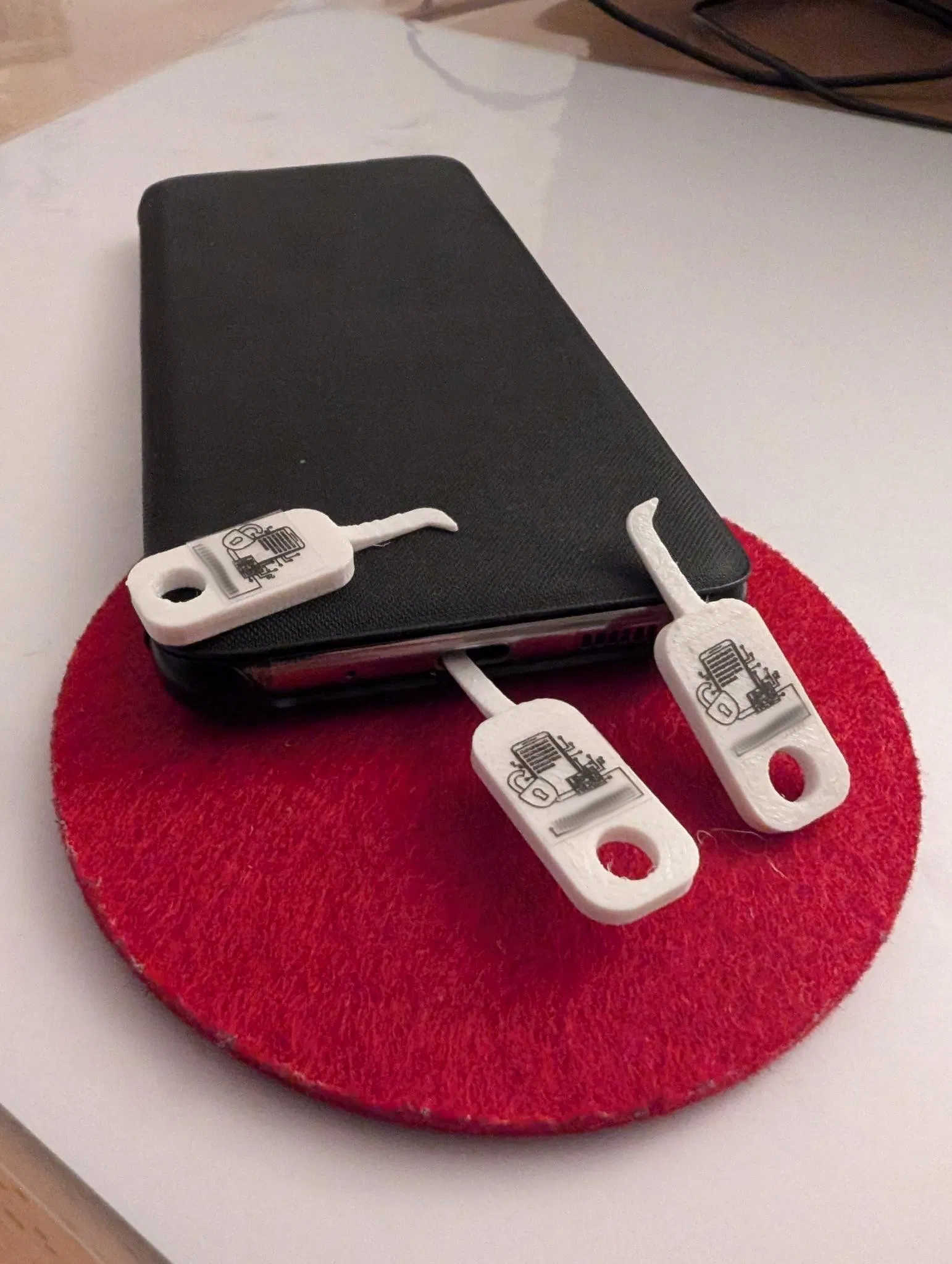 Phần lưỡi có độ dày 0.8mm, khớp với kích thước cổng USB và Lightning. Tổng độ dày là 2mm, nên đủ mỏng để nhét vào ốp điện thoại nhưng vẫn đủ chắc để treo trên móc khóa.