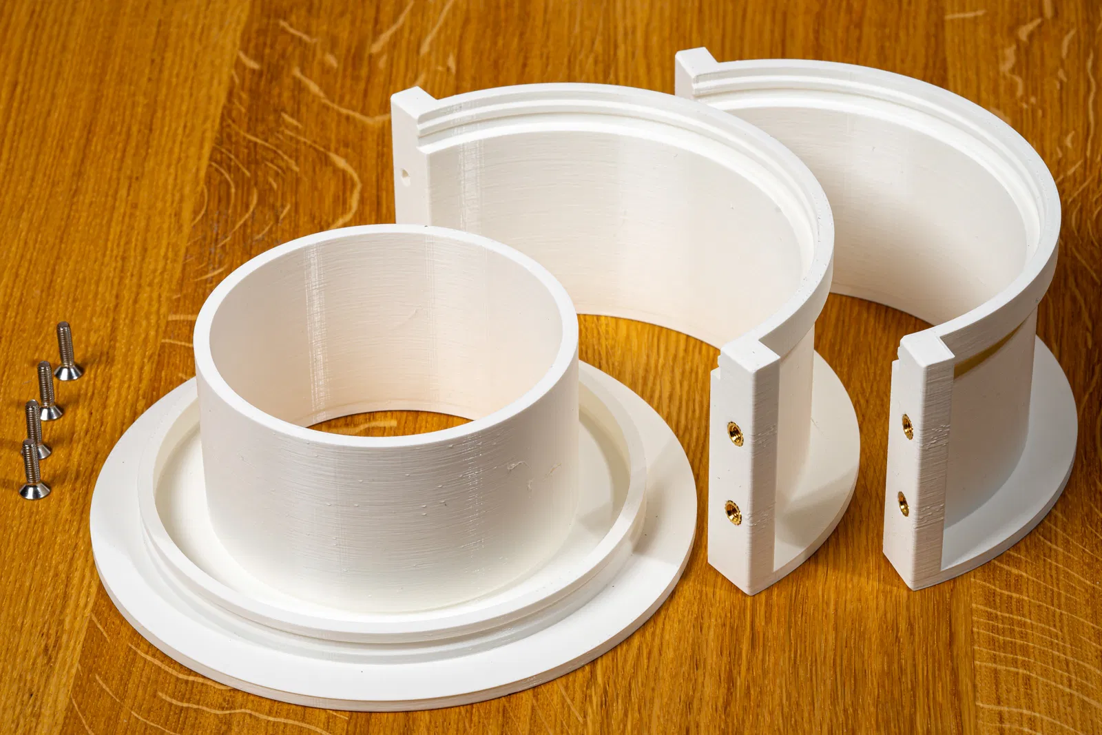 Nếu không chỉnh sửa gì thêm, thiết kế hỗ trợ dùng vít M4 dài 16mm với đầu chìm (countersunk head). Ở phía đối diện, mình khuyên dùng bộ M4 threaded inserts tương ứng của CNC Kitchen, có tại đây: CNC Kitchen Store.