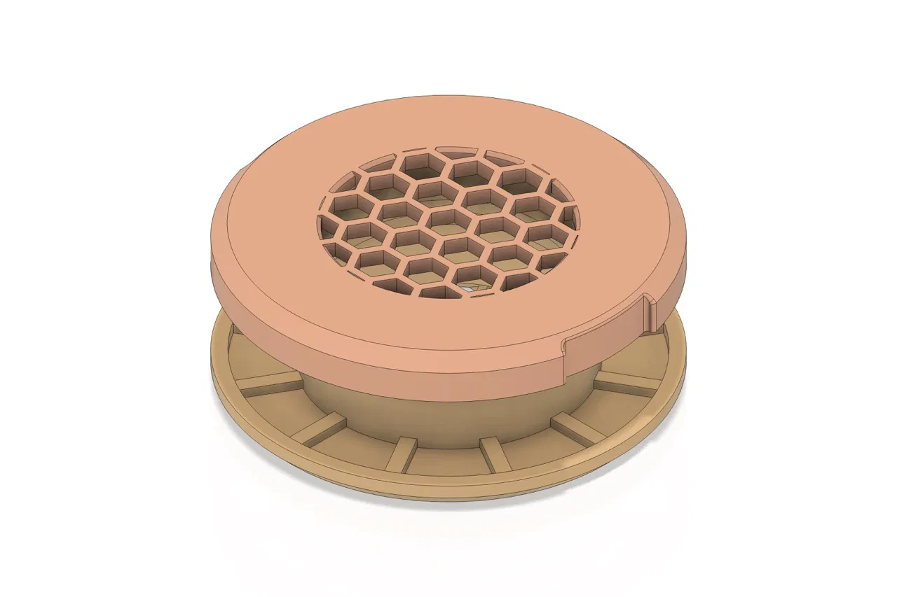 Mẫu vent nhiều kích thước, có tuỳ chọn grille mặt trong và mặt ngoài; có thể kẹp thêm filter khi in grille hai phía. Thiết kế dùng rotation lock để lắp nhanh, chắc chắn; kèm file .3mf và thiết kế parametric Fusion360.