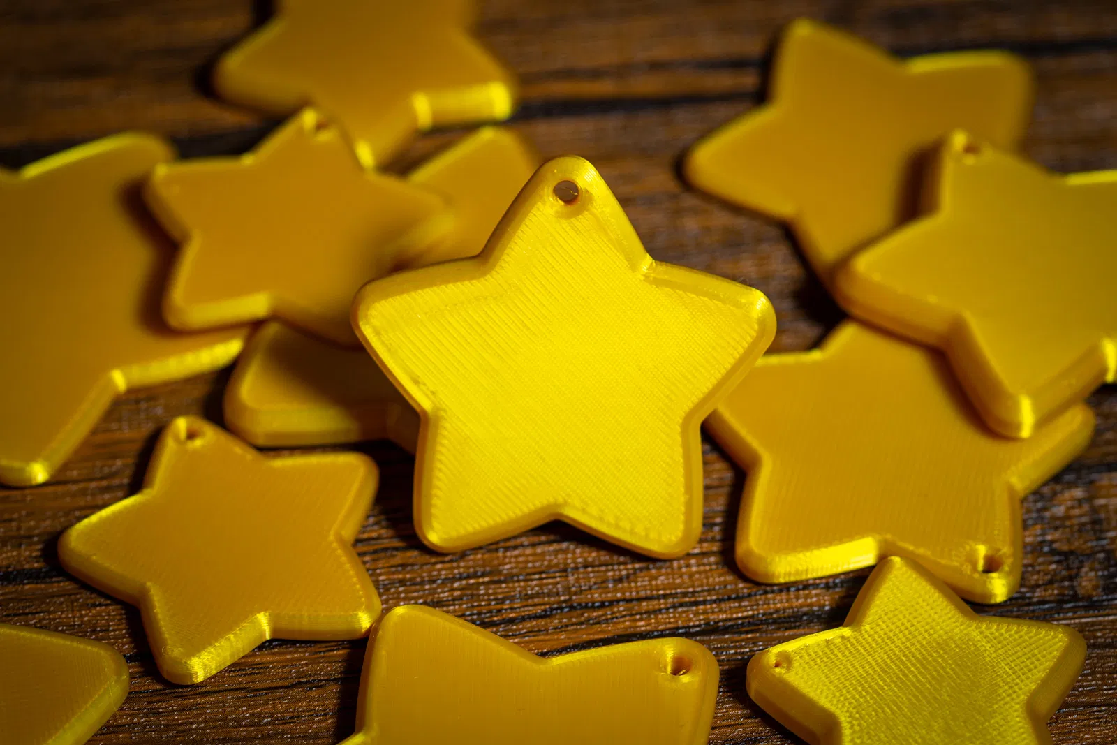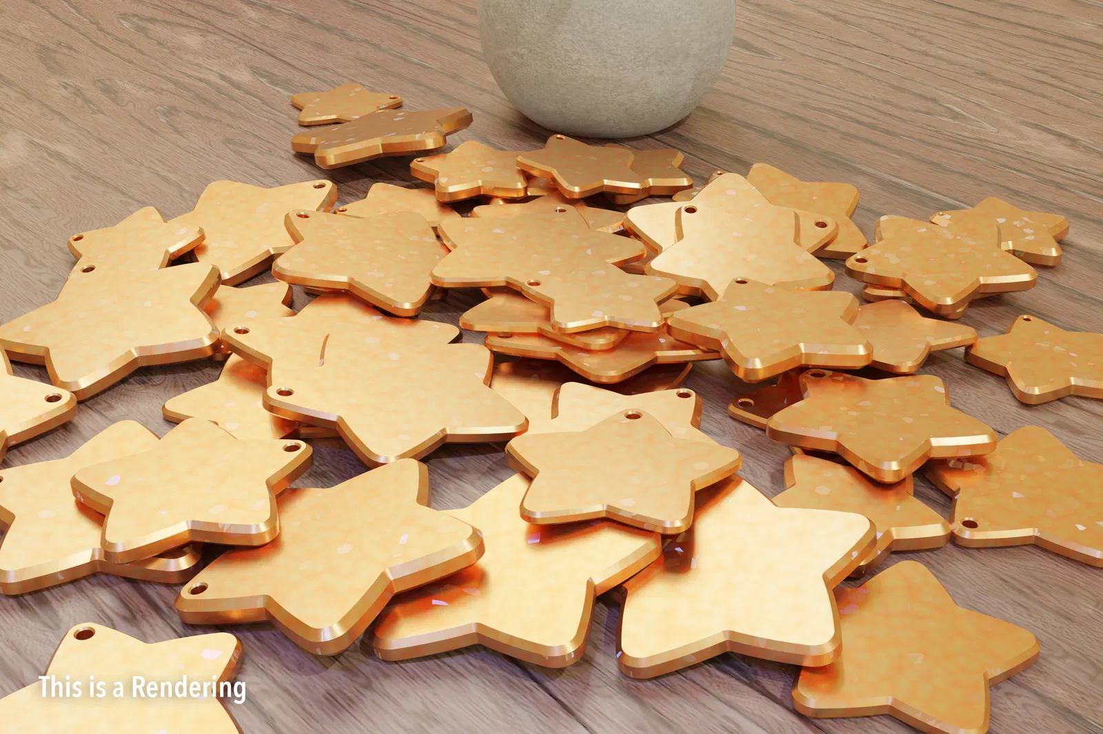 Mẫu sao năm cánh dáng phồng, bo tròn mềm, dễ in để treo ruy băng hoặc dán trang trí gói quà. Có đường kính 40–100mm, dày 3–6mm, gồm 4 biến thể độ dày và bản có/không lỗ (thiết kế Fusion360).