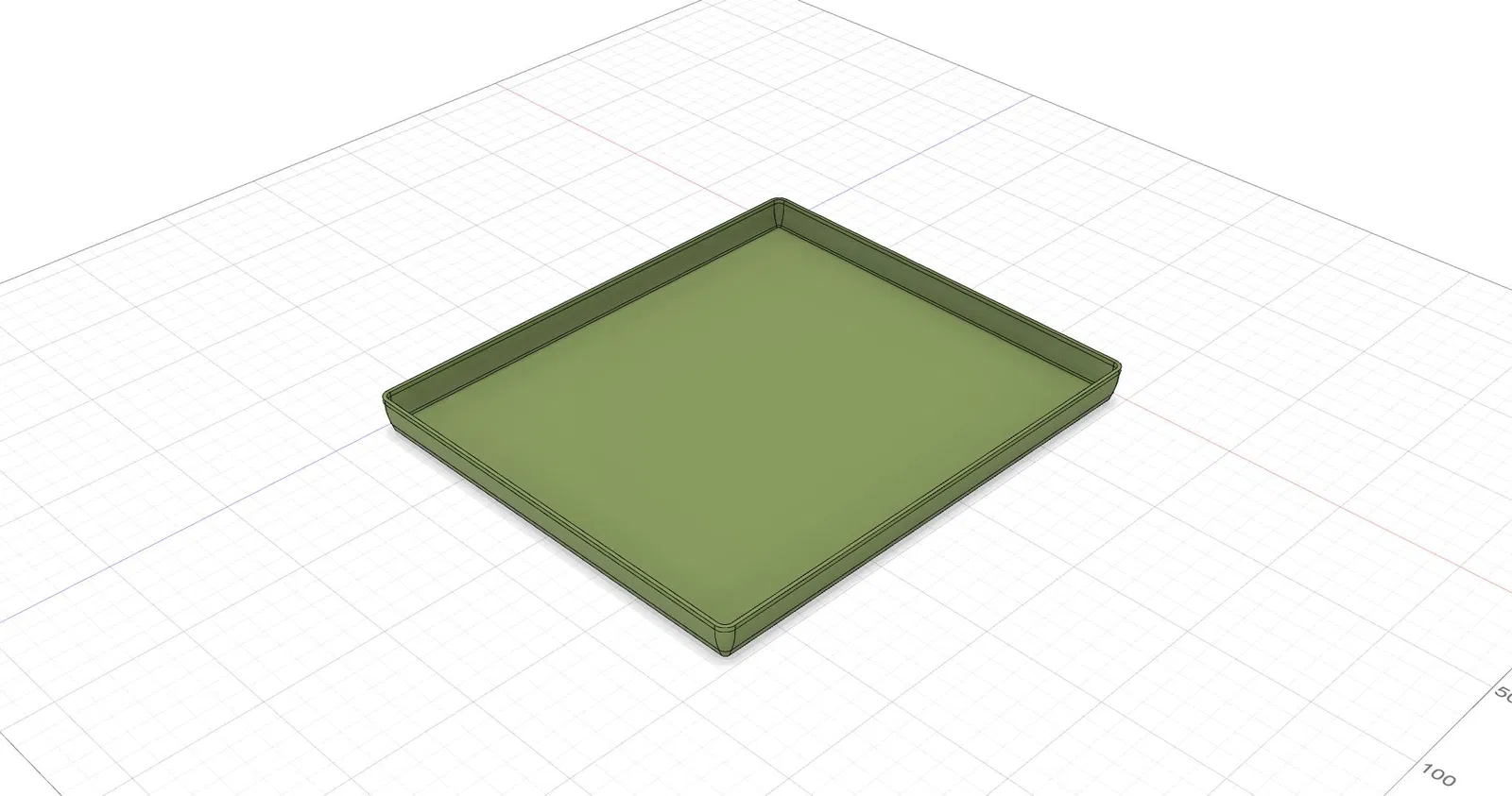 Tên file của model chứa kích thước lòng trong của khay theo mm. Để ra kích thước ngoài, bạn cộng thêm 8mm vào các giá trị này.