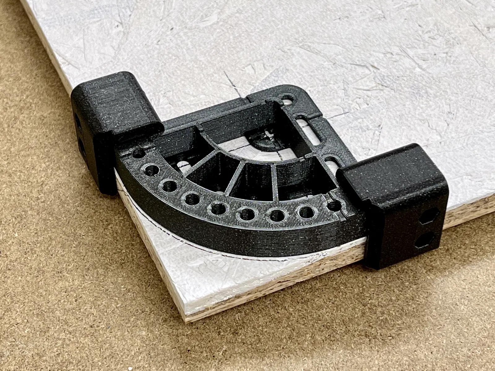 Bộ template bo góc đầy đủ cho đồ gỗ, dùng để kẻ dấu hoặc làm cữ chạy router với mũi flush-trim bit. Có đủ radius 5mm–200mm và 0.5"–8", kèm snap-in guides, tối ưu để in 3D bằng PLA/PETG.