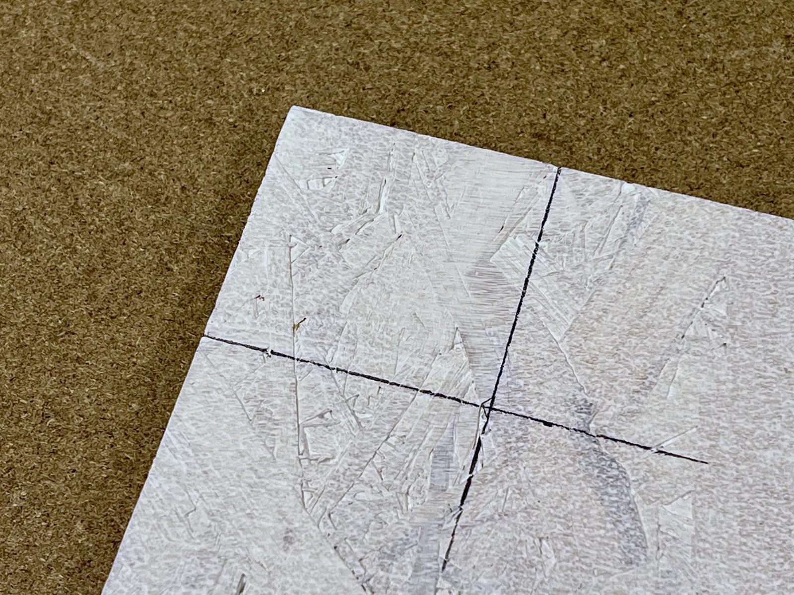 Nếu bạn kẻ hai đường thẳng giao nhau tại tâm của bán kính góc, bạn có thể dễ dàng dùng các vạch này để kiểm tra đúng kích thước và vị trí đặt template.