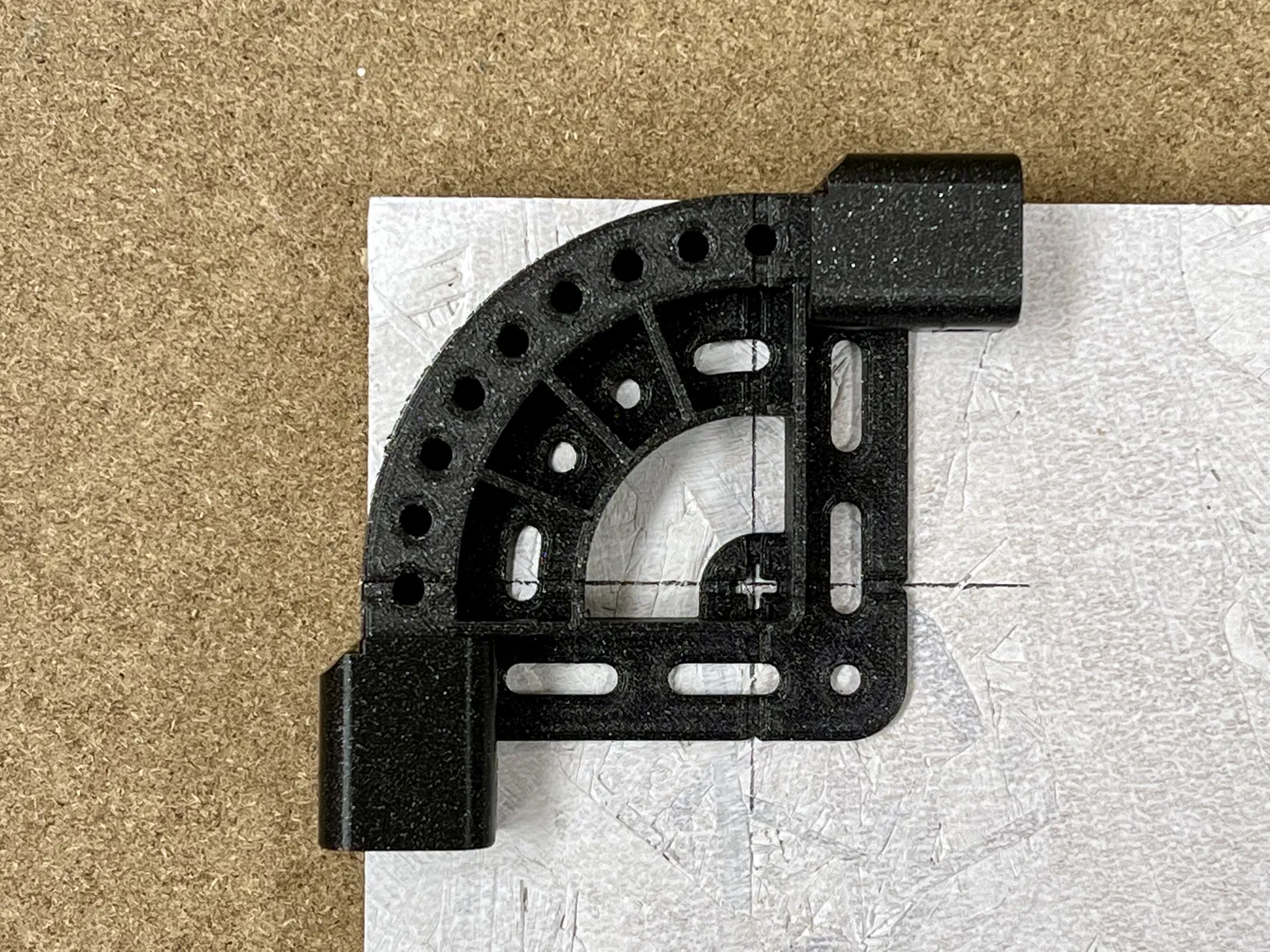 Nếu bạn dùng các khe (slots) thì sẽ có nhiều khoảng để canh chỉnh, giúp đặt template sát mép phôi. Các lỗ nằm ngay tại cung bo (radius) sẽ cho độ ổn định tốt nhất.