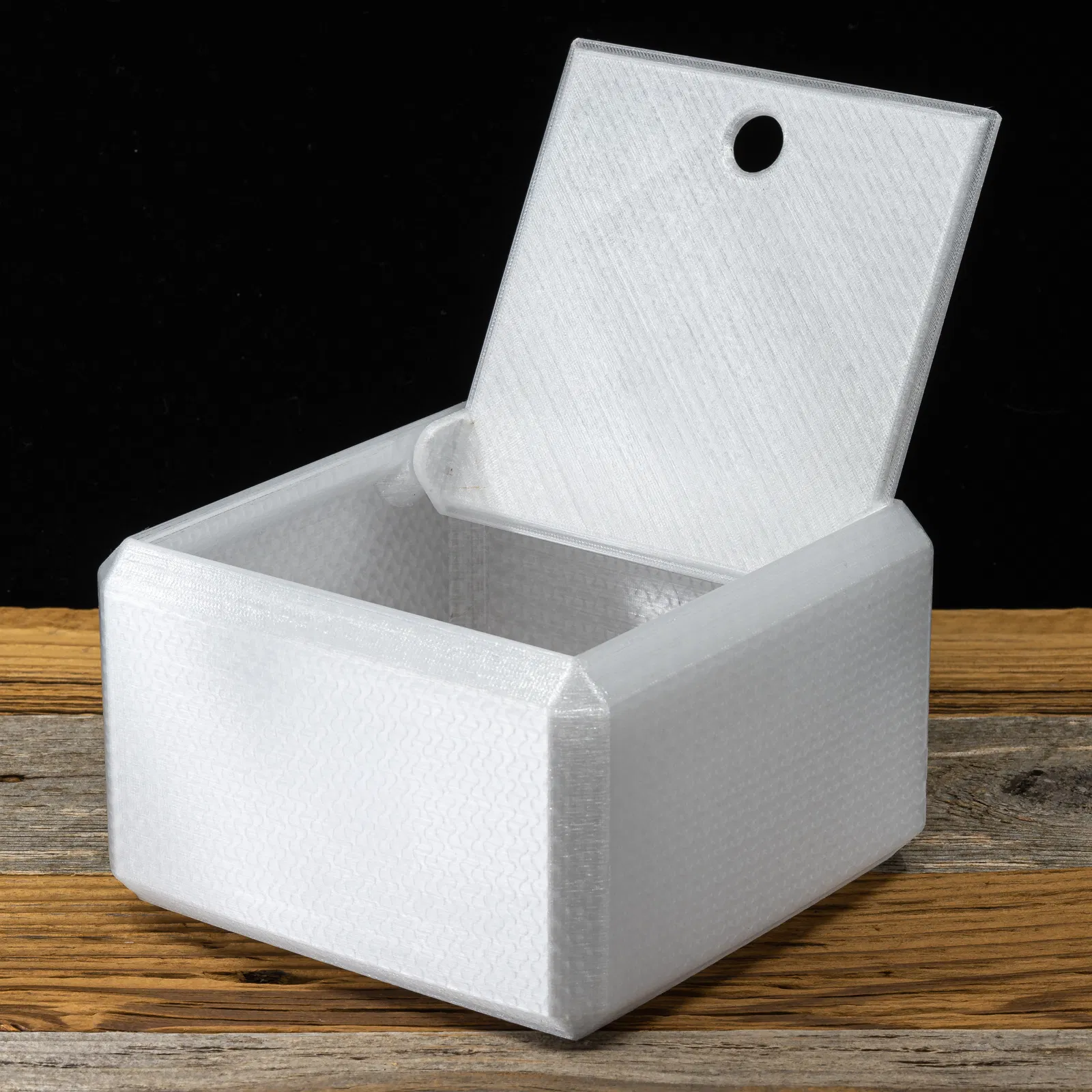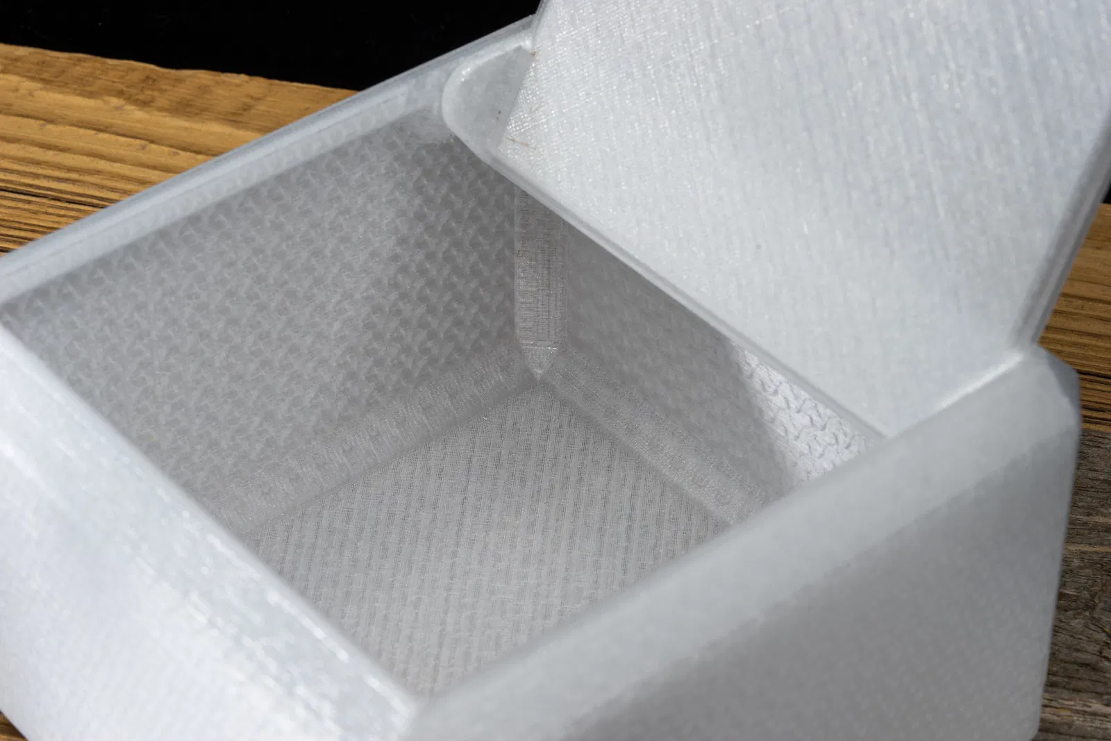 Mẫu hộp có nắp với thành dày 4mm, thiết kế để in bằng filament transparent/translucent cho hiệu ứng đẹp khi dùng infill phù hợp. Có sẵn project PrusaSlicer và hướng dẫn thông số in PLA/PETG.