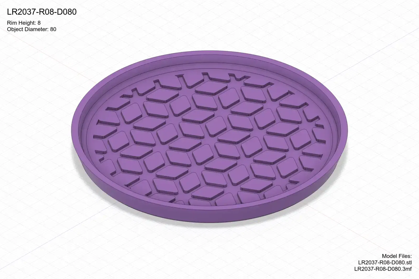 Đường kính vật đặt lên (object) được ghi theo milimet. Đây không phải đường kính ngoài của viền, mà là đường kính của vật (chai, ly) mà bạn muốn đặt lên coaster.