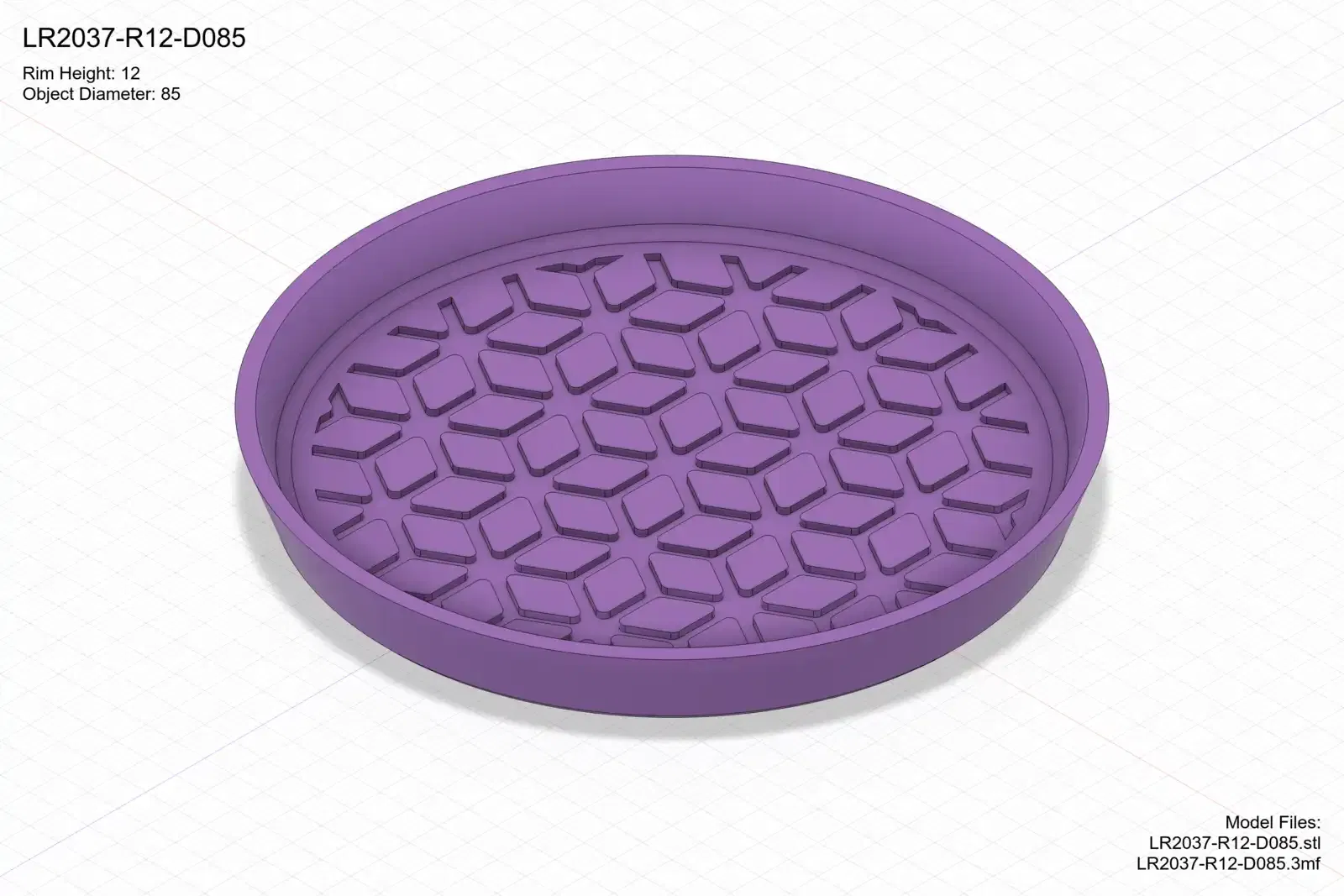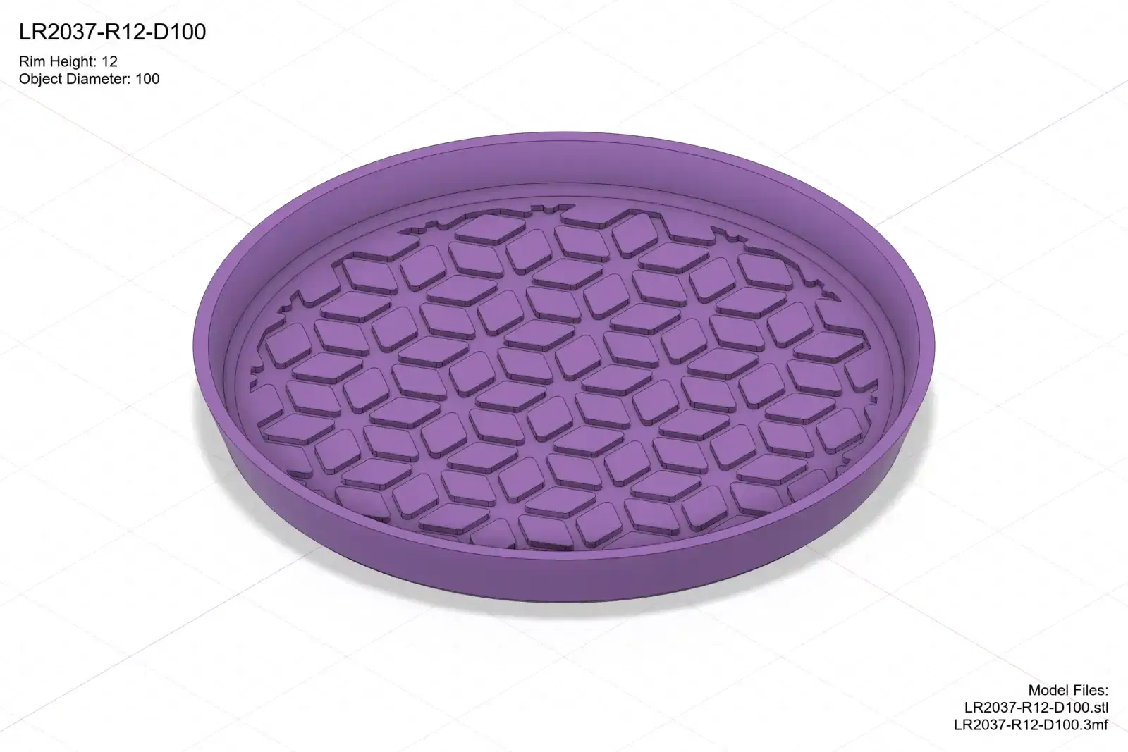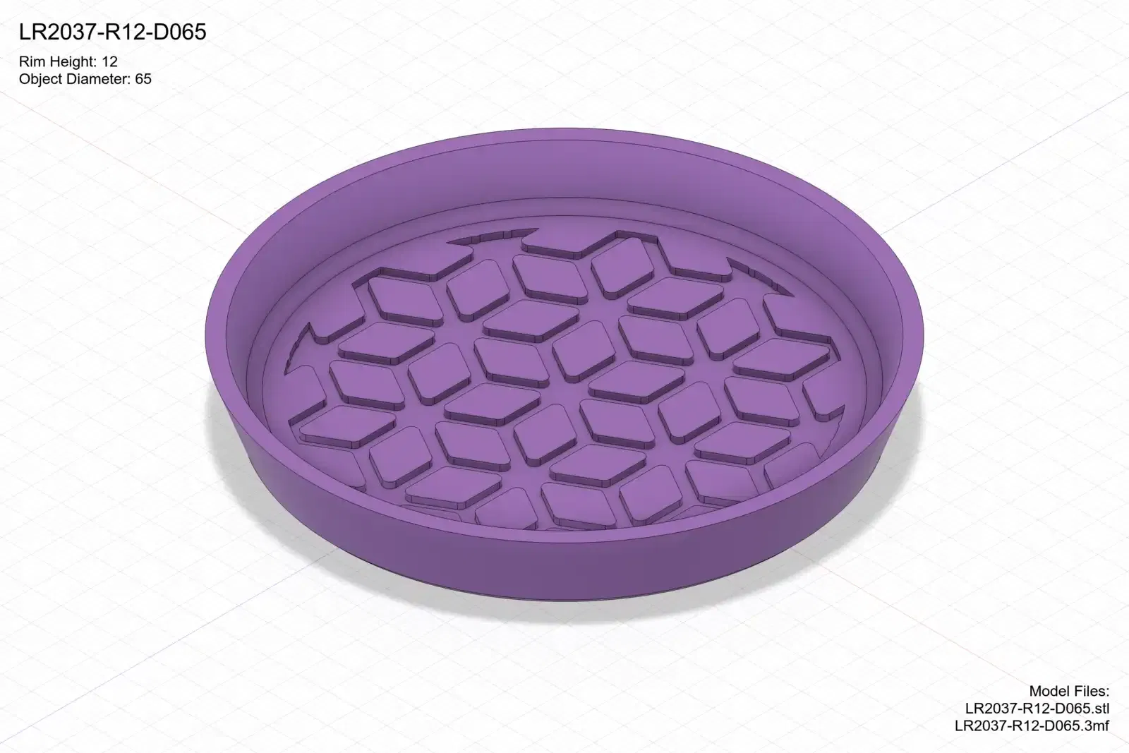 Coaster họa tiết dùng trong bếp, đặt dưới chai nước rửa chén để thoát nước và chống dính. Mẫu tối ưu cho in 3D, hỗ trợ nhiều kích thước (rim height/đường kính), in úp đáy, không cần support.