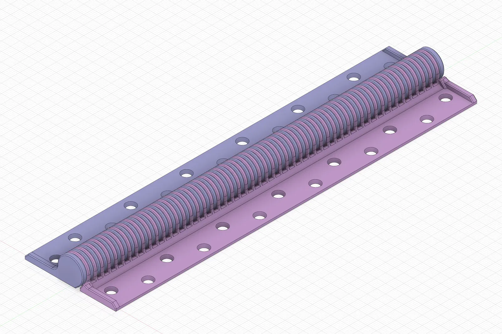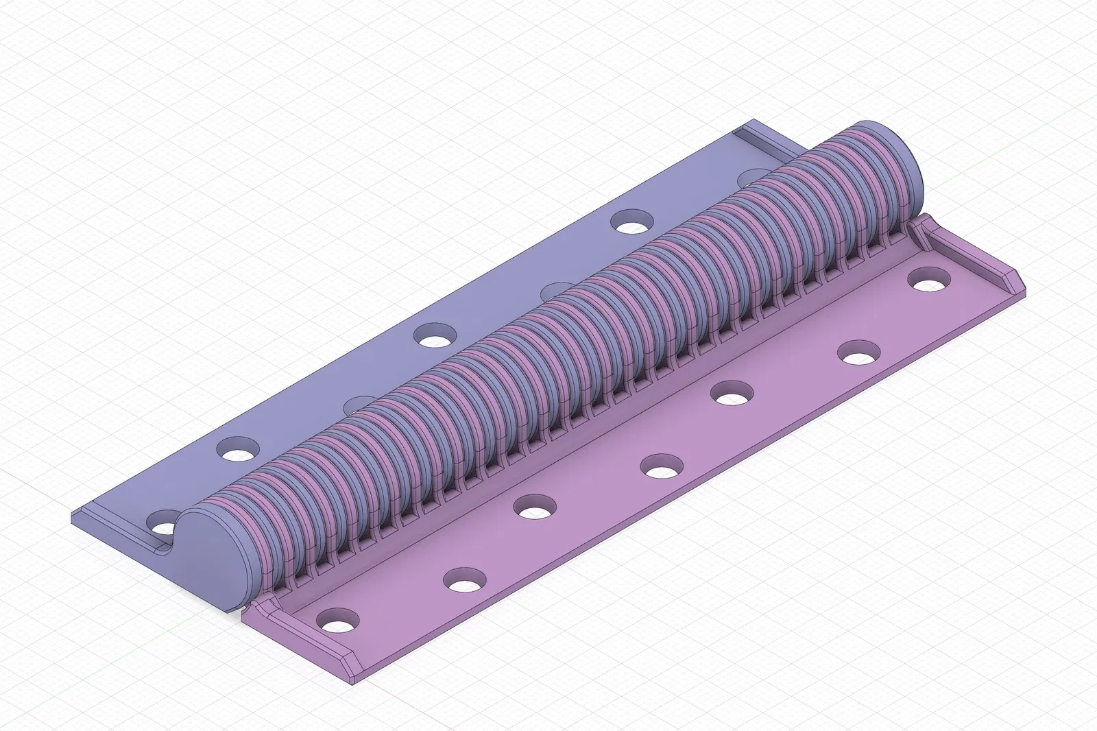 Đây là thiết kế của mình cho một bản lề print-in-place hoạt động đầy đủ – được tạo đặc biệt cho quy trình FFF với vật liệu PETG hoặc ASA. Đây là thiết kế độ bền trung bình với số series 200. Chỉ cần hai bản lề dài 80mm theo thiết kế này là có thể dễ dàng giữ được cửa tủ bằng acrylic hoặc gỗ.