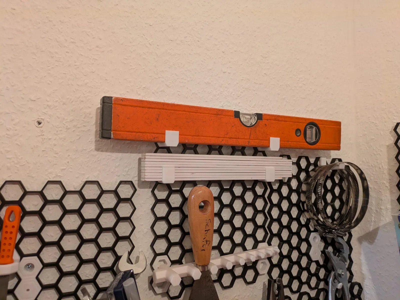 Móc treo thước thủy và dụng cụ khác trên tường tổ ong