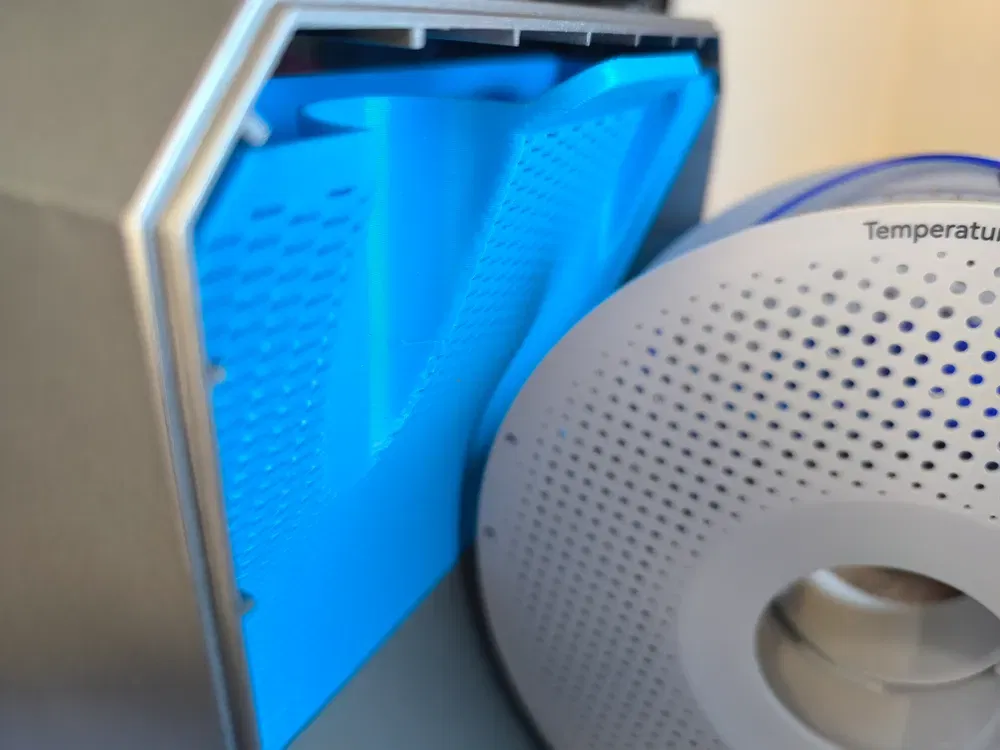 Hộp trượt vào khoảng trống phía trước. Các khe cắt cho đường ra filament đã được tích hợp sẵn.