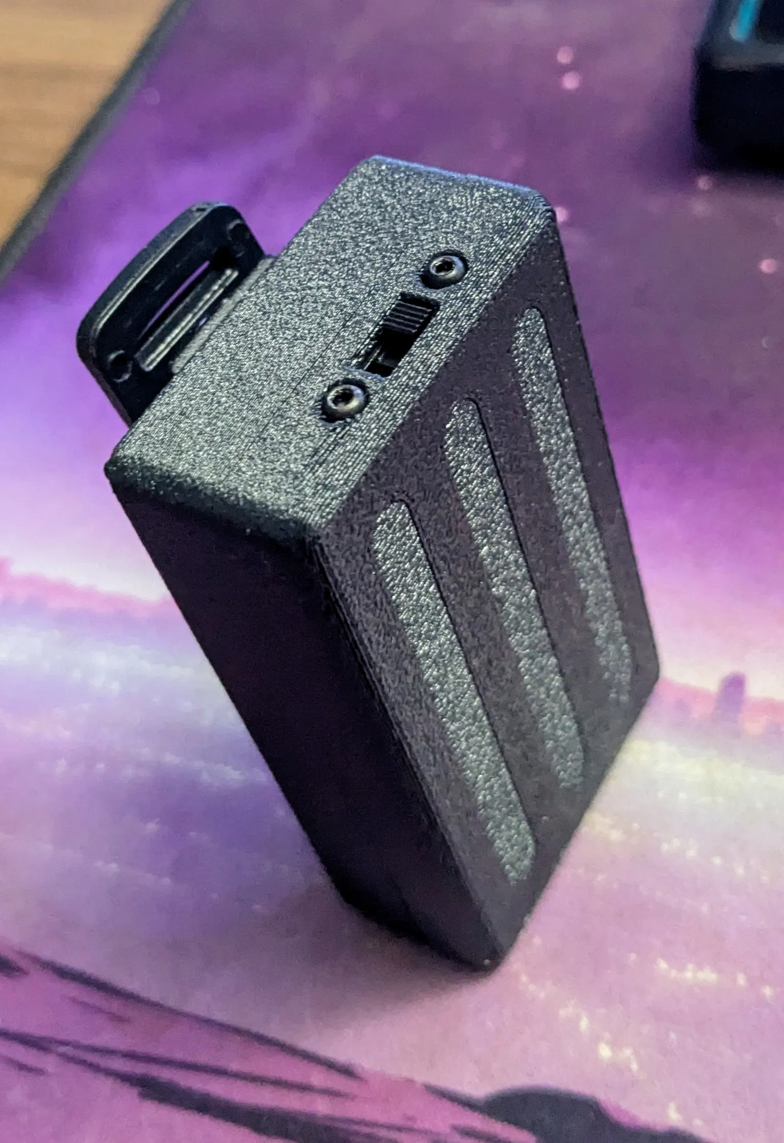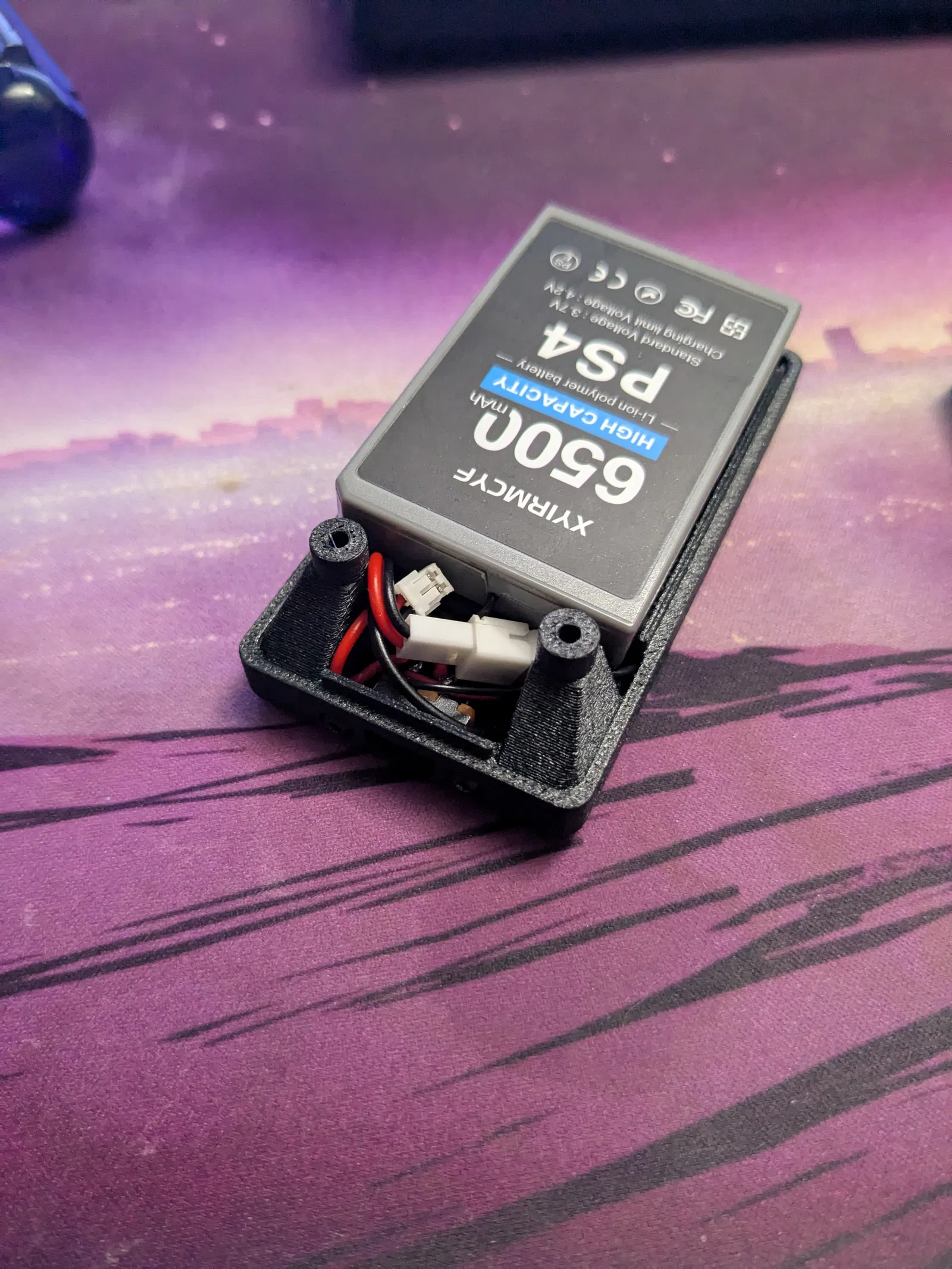 In 2 nửa theo file có sẵn ở layer height 0.2mm. Không cần support. Khuyến nghị ABS/ASA, nhưng PETG chắc cũng đủ. Baofeng belt clip loại lò xo bán nhiều trên Amazon và AliExpress, hoặc bạn có thể in một cái cơ bản như cái này. Lỗ mù (blind holes) cho ốc belt clip được canh theo ốc M2.5 đi kèm clip, nhưng ốc M3 vẫn vô nếu bạn chịu khó vặn/ép nhẹ chút. Bản có power switch được thiết kế theo công tắc này, và sẽ cần 2 con ốc M2x4mm để cố định. Pin tay cầm PS4 có 2 loại đầu cắm tùy đời: JST pitch 1.25mm hoặc 1.0mm. Phần lớn pin aftermarket có sẵn cả hai, nên bạn chọn loại nào tiện để gắn vào FakeTec cũng được.