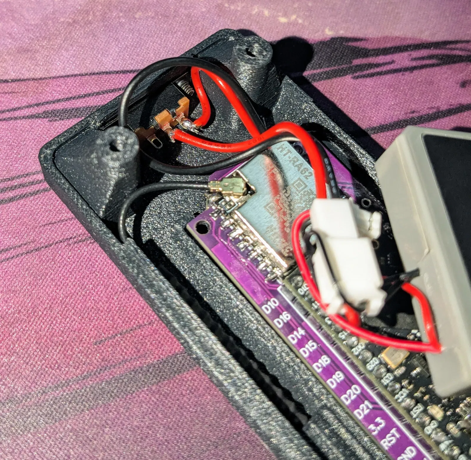 Không có màn hình, không có nút bấm, và cũng không chừa chỗ cho LED. Cố tình làm tối giản hết mức. Bạn có thể chọn gắn power switch hoặc không. Thiết kế dùng antenna LoRa pigtail gắn trong và pin tay cầm PS4 (dùng với FakeTec được khoảng ~3 ngày). Kẹp lên thắt lưng như cái máy nhắn tin (pager) rồi giả bộ quay về thập niên 90.