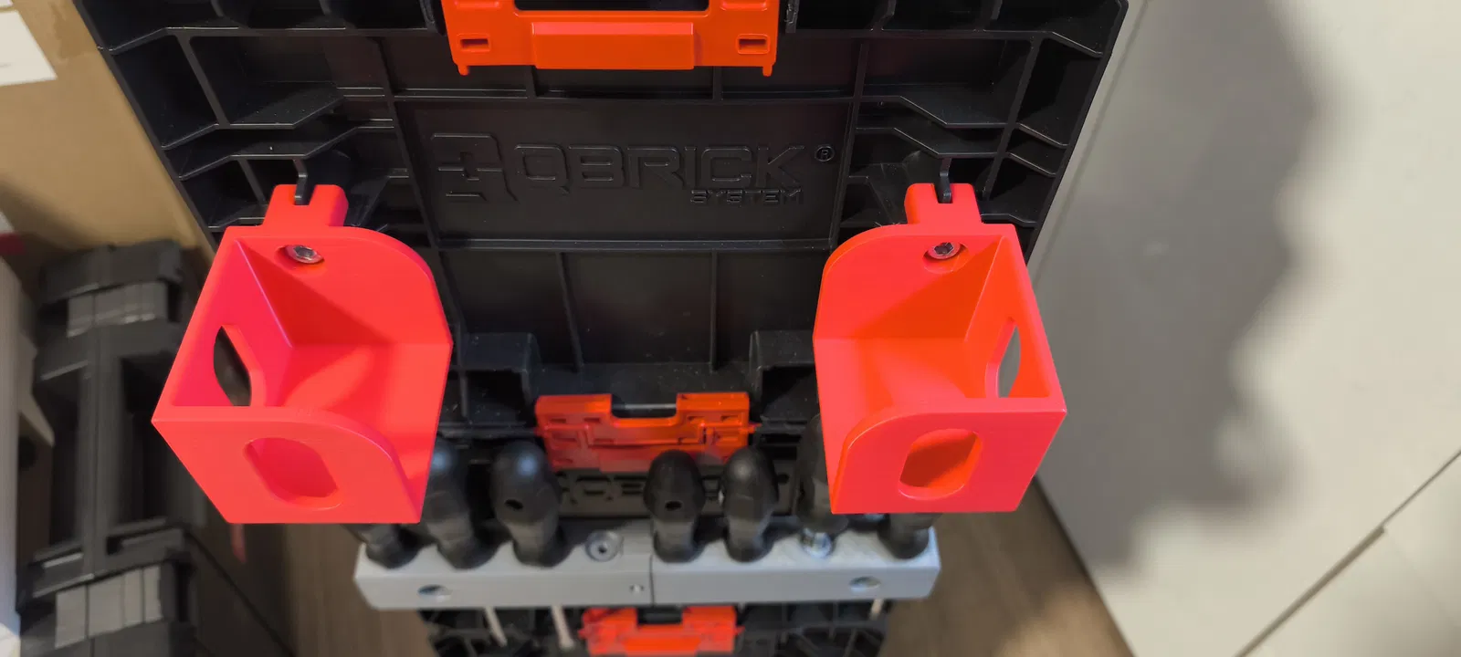 Giá đỡ/side mount giúp gắn thùng đồ nghề Qbrick vào insert cho hộp nhỏ. Khuyến nghị in PETG với nozzle 0.4, layer 0.2, 3 perimeters và infill 15% gyroid. Có kèm file .f3d để chỉnh sửa.