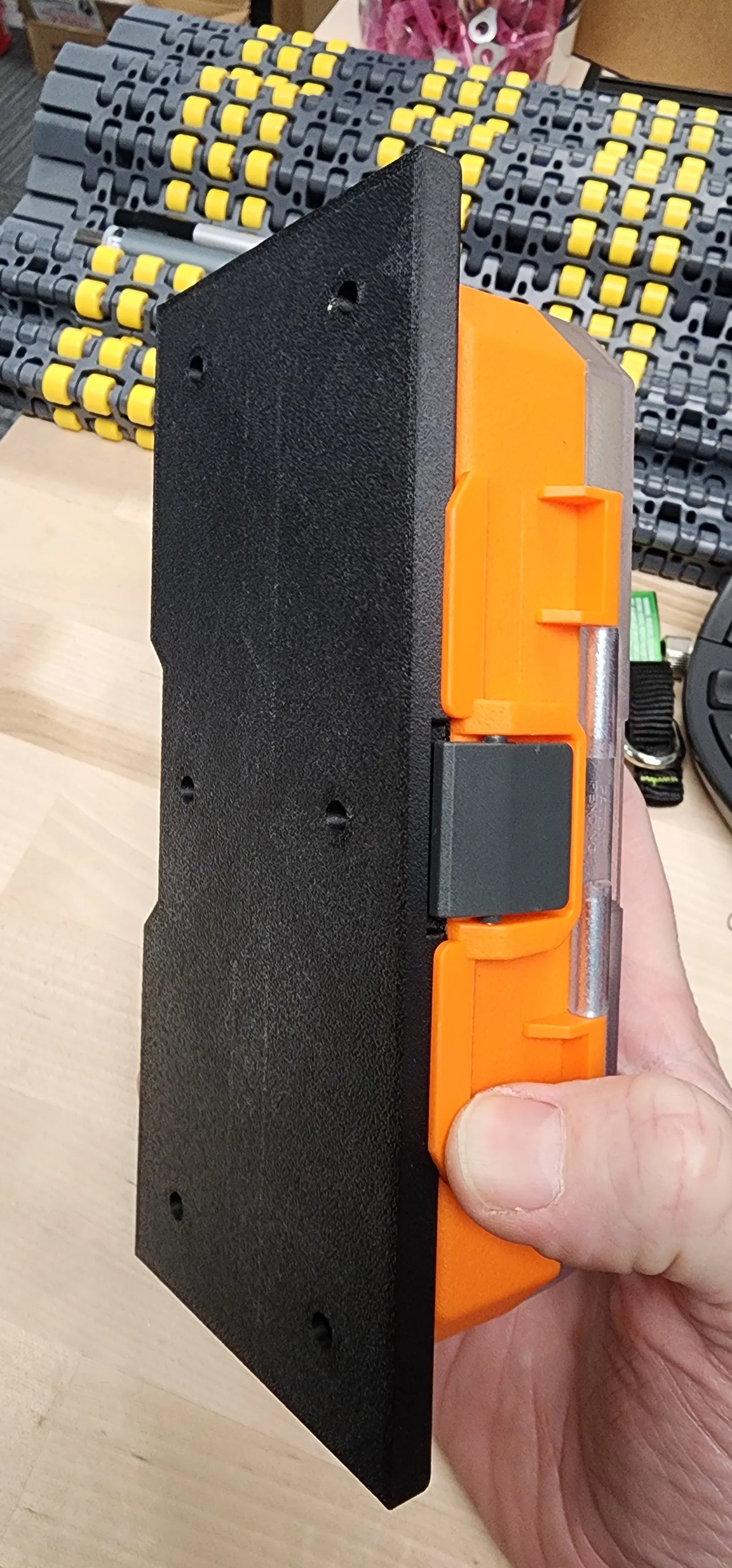 Đây là một tấm plate gắn tường để treo Klein KNECT Modbox của bạn. Độ fit khá khít; tùy theo từng hộp, có thể cần gọt bớt một chút. Giữ hộp khá chắc chắn. Có 6 lỗ bắt vít dạng countersunk để gắn lên tường hoặc bất cứ vị trí nào bạn muốn.