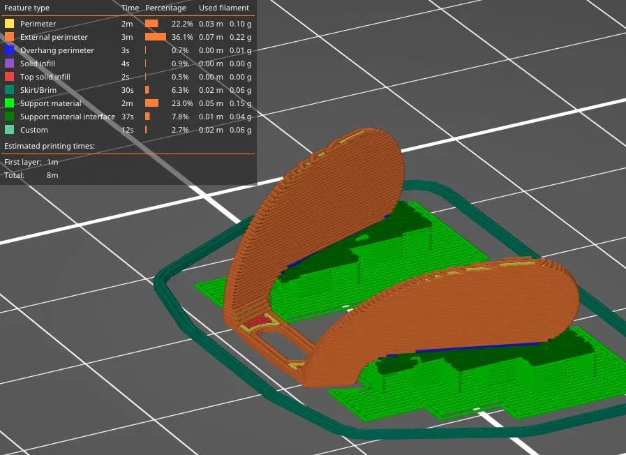 Tôi đã mất miếng đệm mũi thay thế cuối cùng cho kính Swissflex Eyephorics 2.5 của mình. Bạn biết đấy, cái mà Jaime Hyneman đã đeo trong chương trình Mythbusters. Đây là một miếng thay thế vừa vặn, thoải mái mà tôi đã thiết kế và in trên máy Prusa i3 MK3S+ của mình bằng PLA tổng hợp, màu trong suốt. Nó có hỗ trợ cho các bộ hỗ trợ và chúng gãy ra khá sạch sẽ. Nó in trong 8 phút. vòi phun 0.4 mm, chiều cao lớp 0.2 mm.