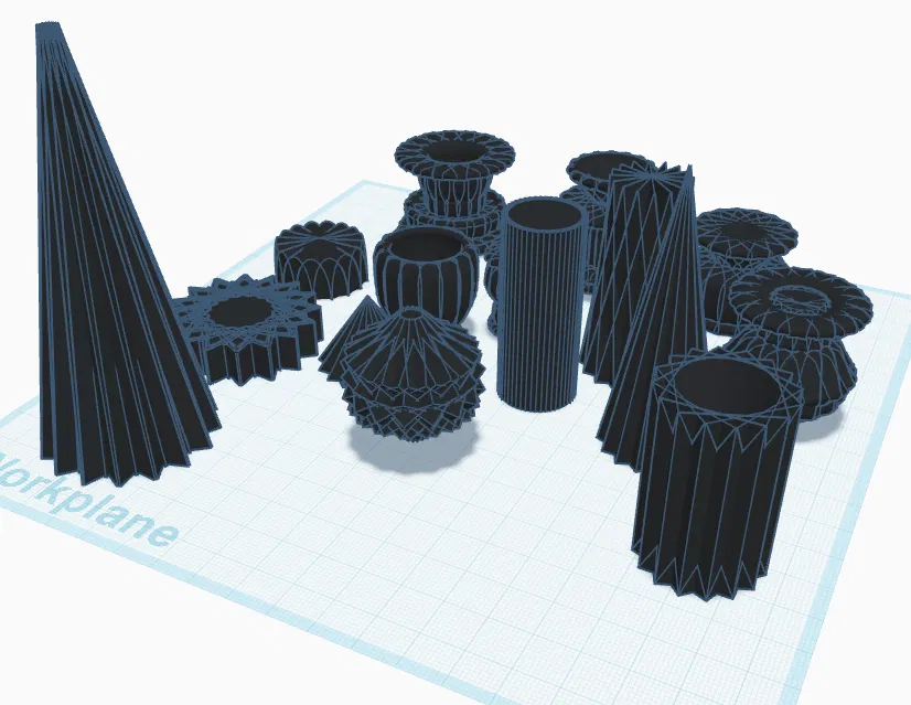- Đa dạng mẫu mã: Bộ sưu tập bao gồm nhiều hình dạng độc đáo, từ hình nón cao vút đến các khối trụ và hình hoa văn tinh xảo, đảm bảo phù hợp với nhiều sở thích khác nhau.