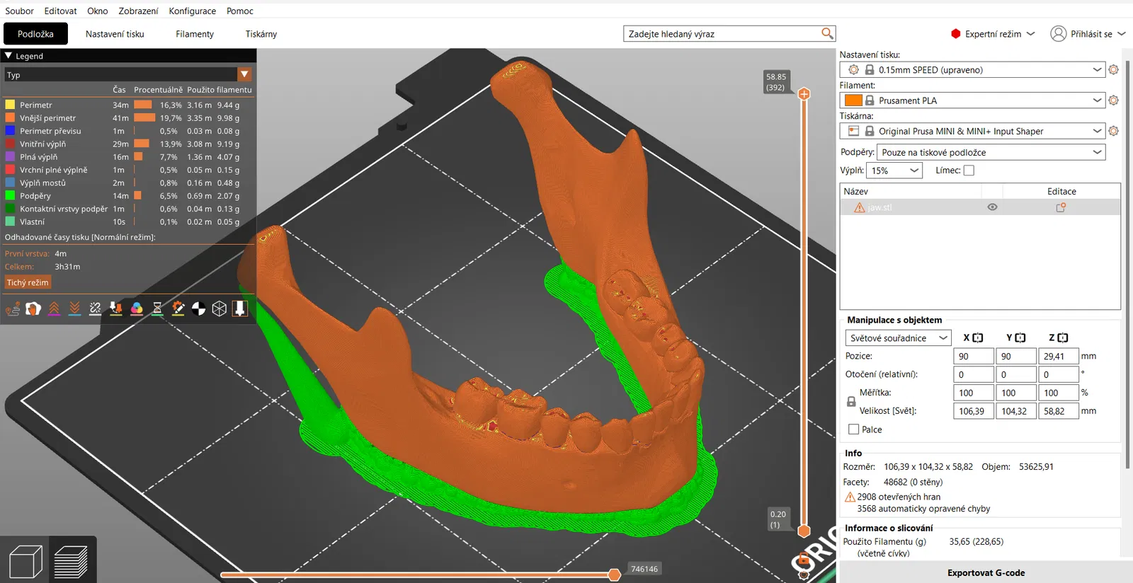 - Lưu ý: Nên điều chỉnh layer height phù hợp (khoảng 0.15mm - 0.2mm) để đạt được độ chi tiết tốt nhất cho các bộ phận nhỏ như răng và các đường nét xương.