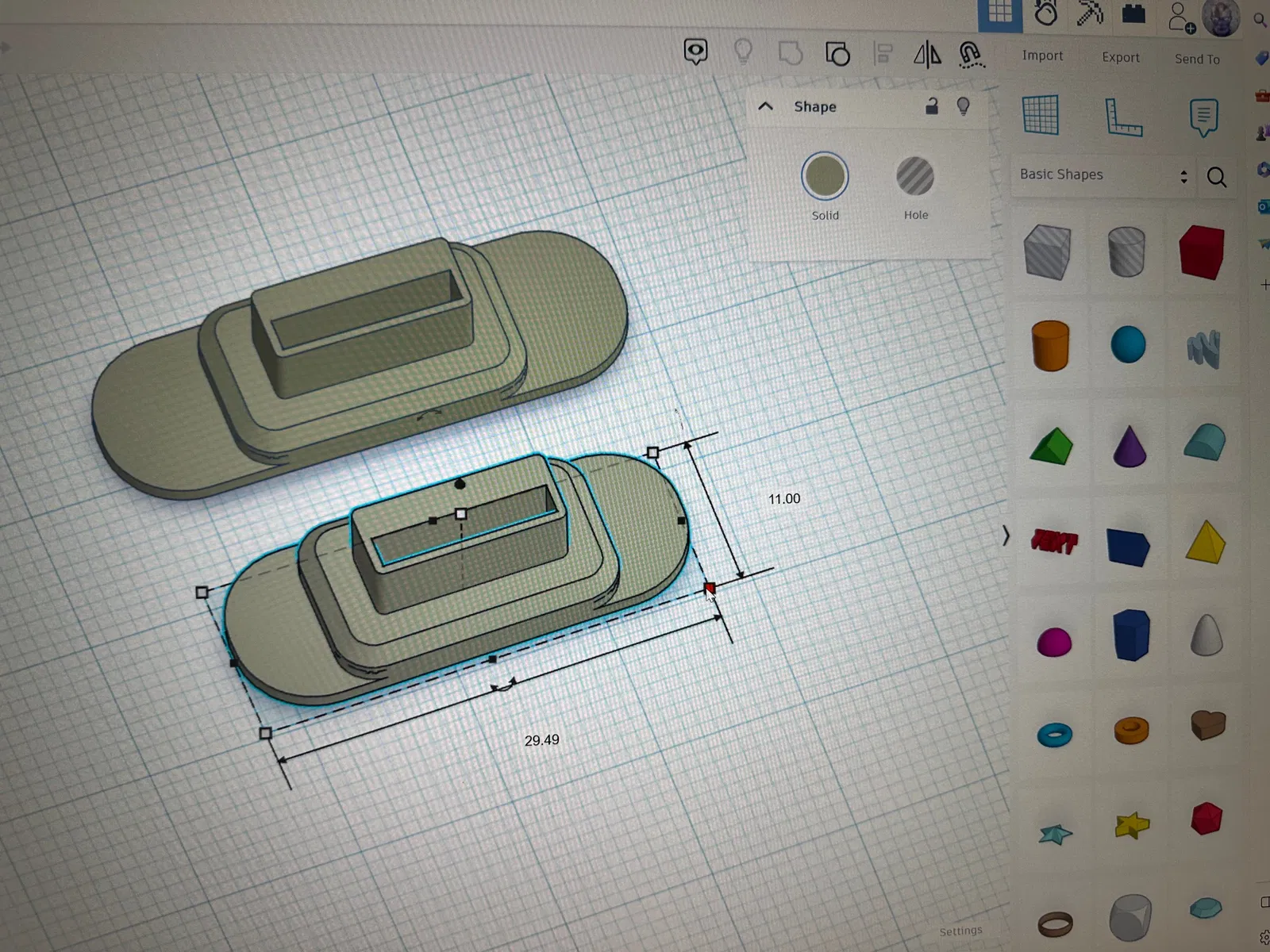 Đầu tiên mình gia cố vách bằng cách làm dày hết cỡ, giống như một USB drive vậy. Thứ hai mình hạ thấp chiều cao để nó không chìa ra nhiều nữa, nhưng vẫn chừa đủ khoảng để bạn luồn móng tay phía sau mà gỡ ra khi cần. Thứ ba và cũng là cuối cùng, mình làm thêm một phiên bản hẹp hơn theo chiều dài để gọn hơn, nếu bạn thích kiểu nhỏ gọn.