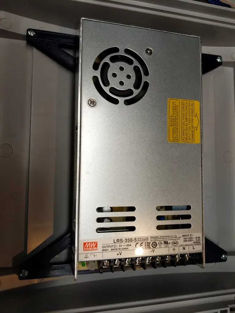 Meanwell Mount cho cửa CG1500. In hai trường hợp. Sử dụng ốc vít máy M4 để gắn giá treo vào nguồn điện và