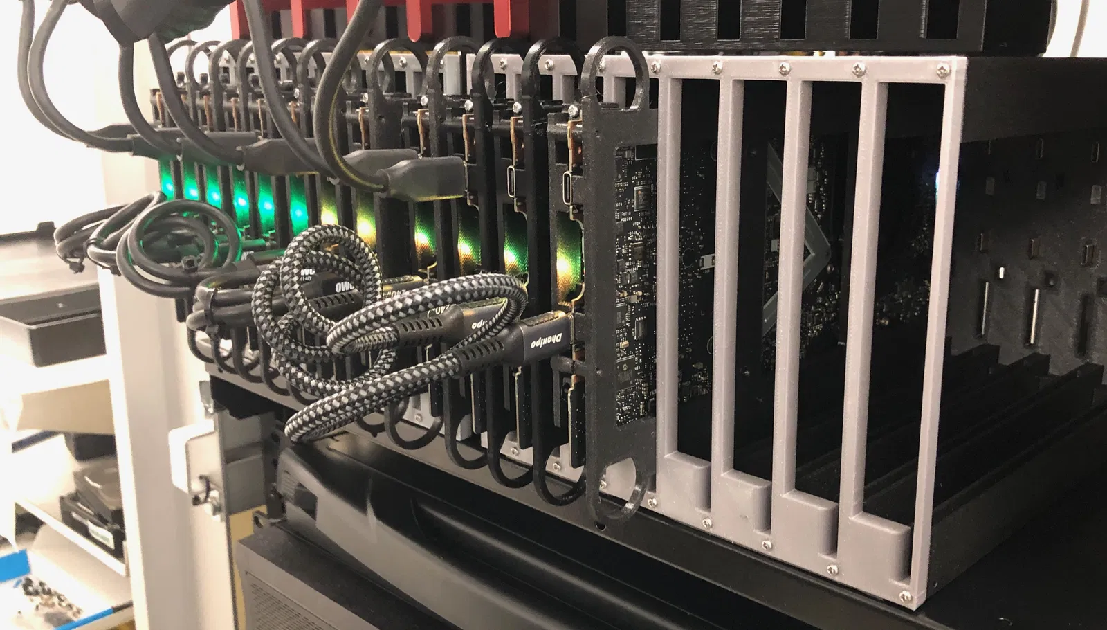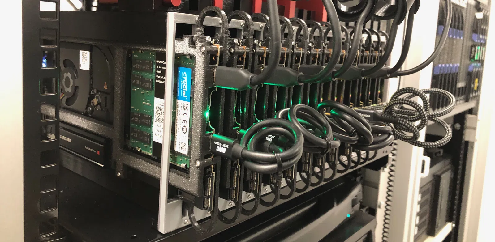 Bên mình cấu hình các Framework Mainboard theo từng cặp mirror, dùng Debian Bookworm và DRBD để đồng bộ các image VM trên NVMe qua Thunderbolt ở tốc độ 15G/s.