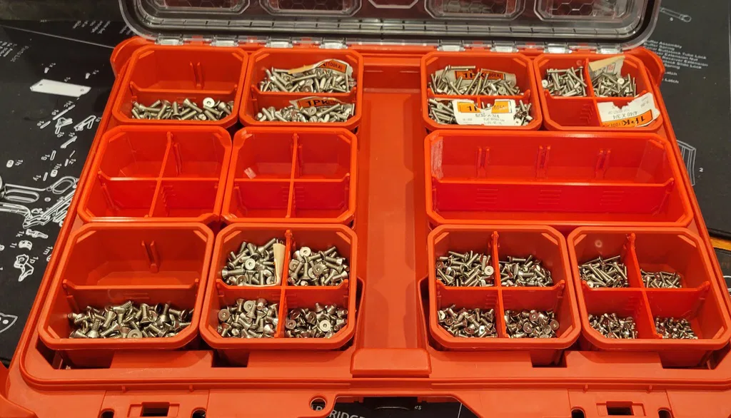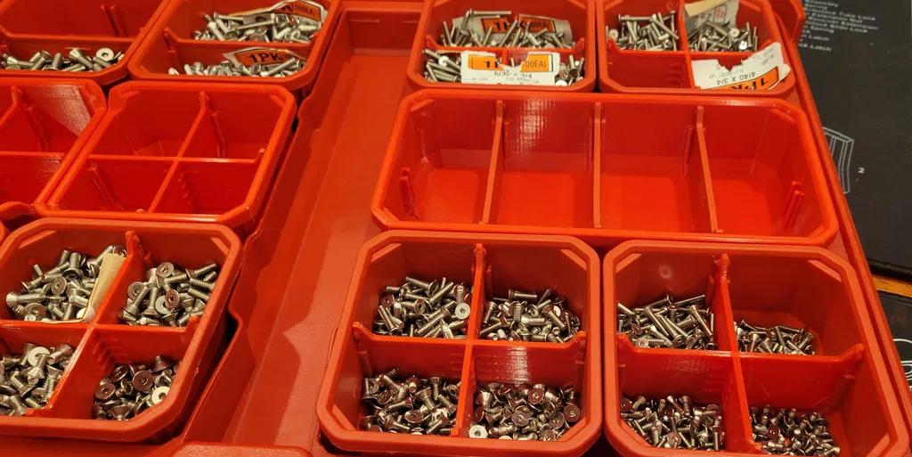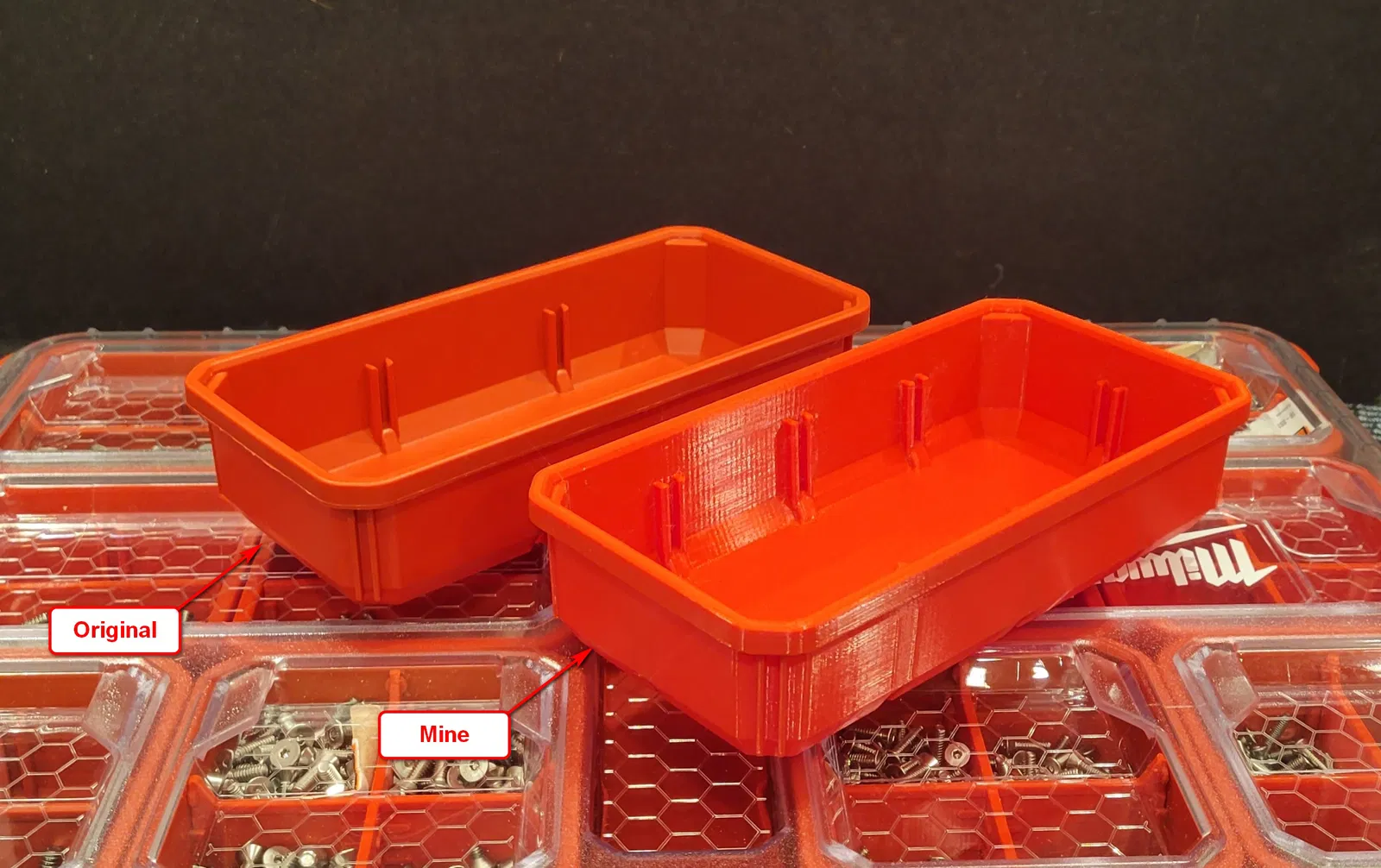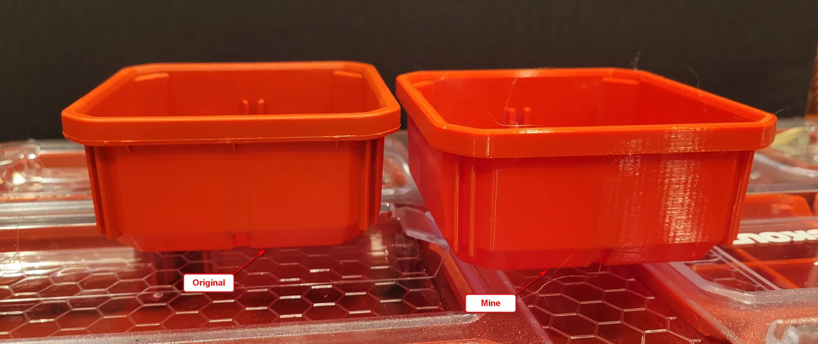 Mình mua cái Milwaukee Packout Low Profile Organizer, và thích gần như mọi thứ về nó — trừ cái khay chữ nhật. Việc nó bị chia sẵn thành ba phần làm mình khó chịu, và việc nó không thể chia theo trục dài cũng vậy, nên mình dựng model lại và làm bản copy. Mình muốn model của mình nhìn y như hàng zin, nên thay vì chỉ làm cái gì đó “xài được” nhưng nhìn lạc quẻ, mình cố làm sao cho nó hòa vào, nhìn như đồ gốc.