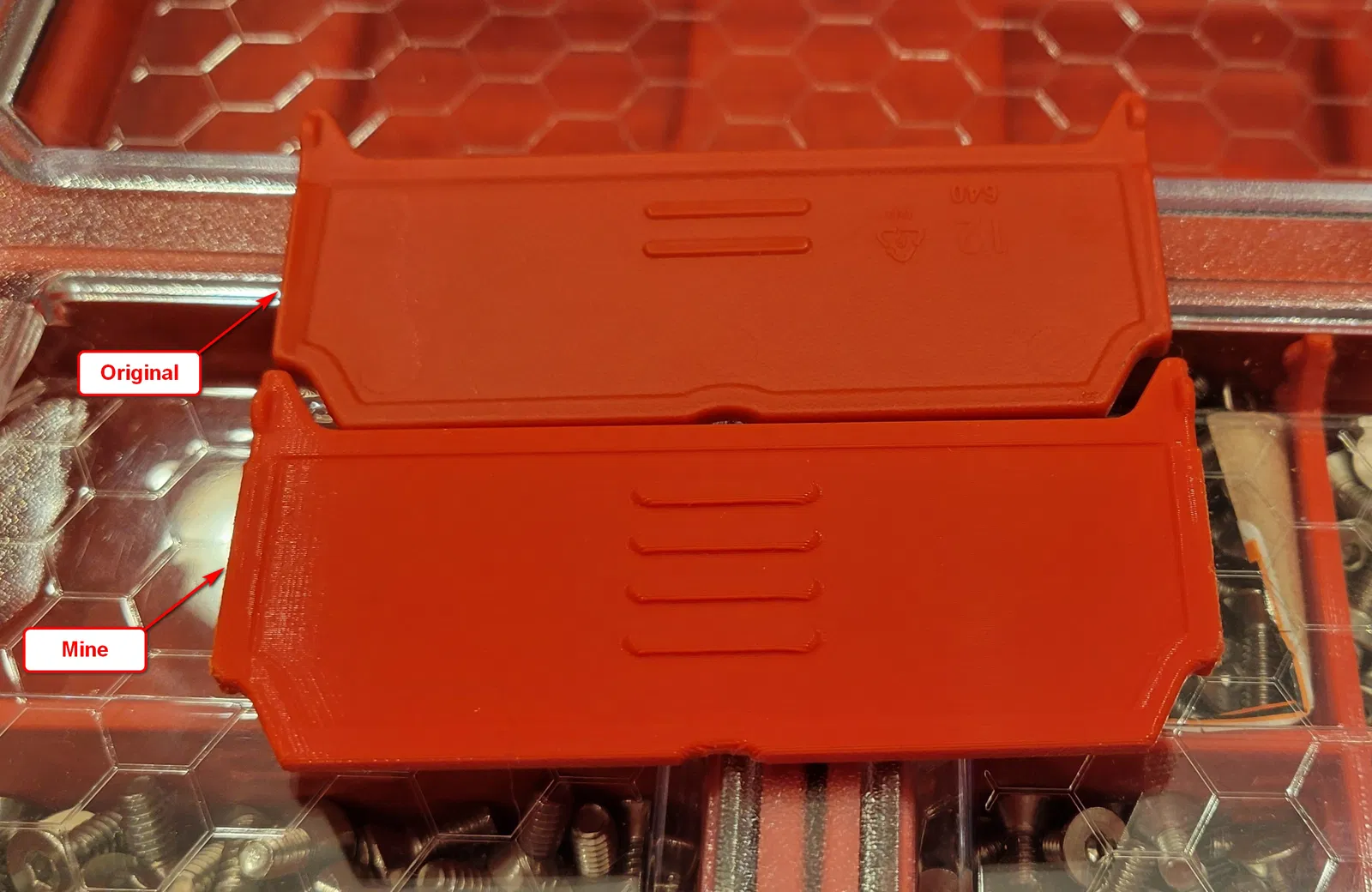 Các vách ngăn cũng cần chỉnh để dùng được ở rãnh khay chữ nhật. Vách ngăn thường có thể dùng nguyên nếu bạn gắn theo chiều “dọc” (từ phía trên hộp xuống phía dưới hộp), nhưng nếu muốn gắn theo chiều “ngang” (từ bên trái hộp sang bên phải hộp) thì cần loại vách ngăn “clipped”.