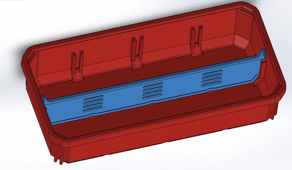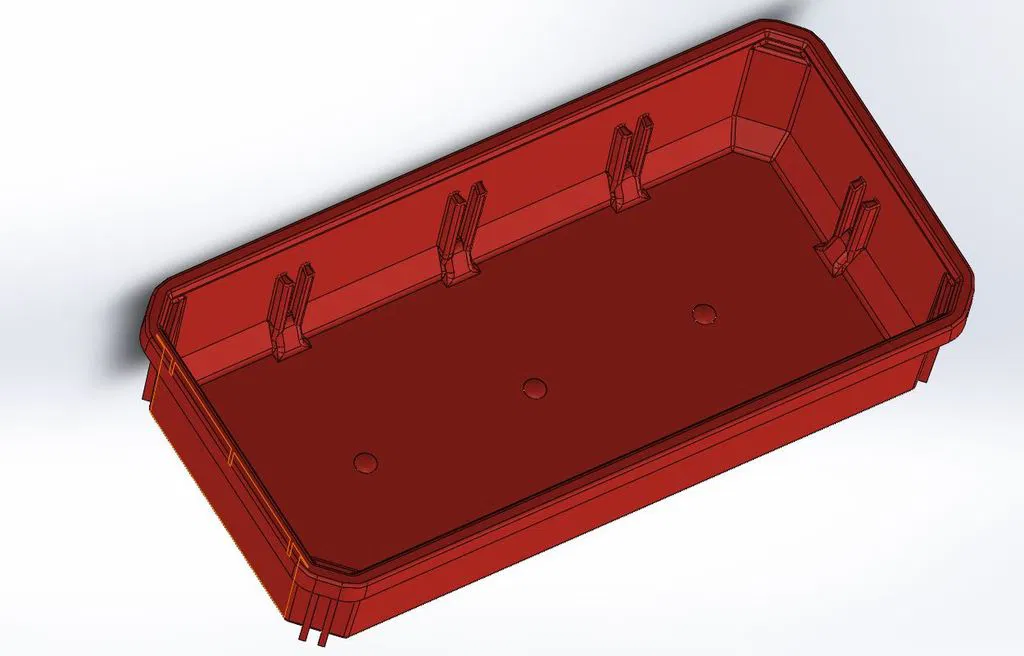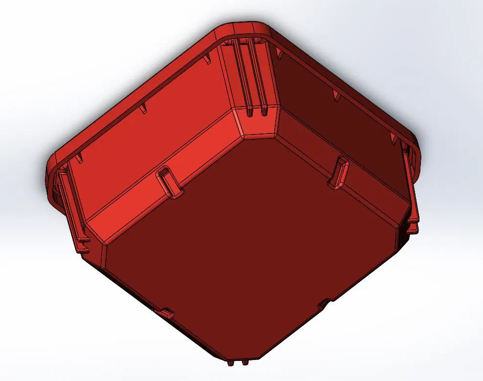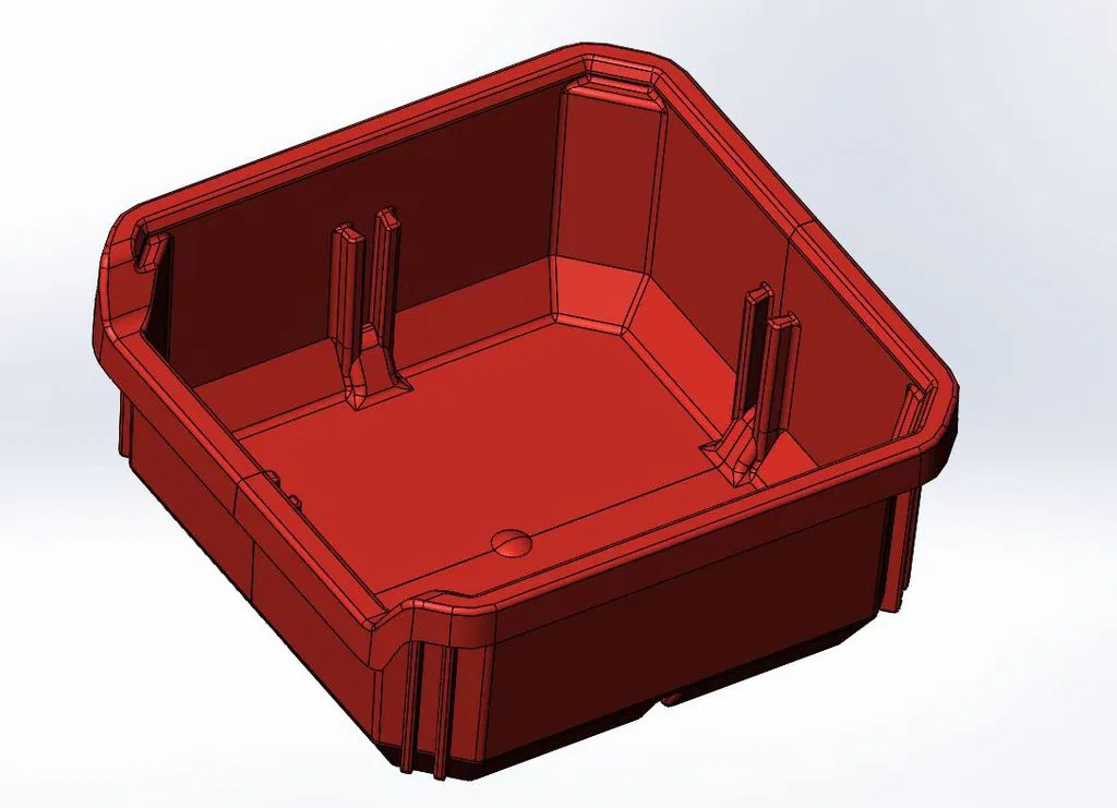 Nhưng cái khó nhất để dựng là khay vuông có thể đặt vào vị trí khay chữ nhật trong hộp. Mình dùng mép trên của vách ngăn làm biên dạng cắt, rồi dựng lại phần gờ (lip) của khay sao cho nhìn giống kiểu ép nhựa (injection molded) như khay Milwaukee.