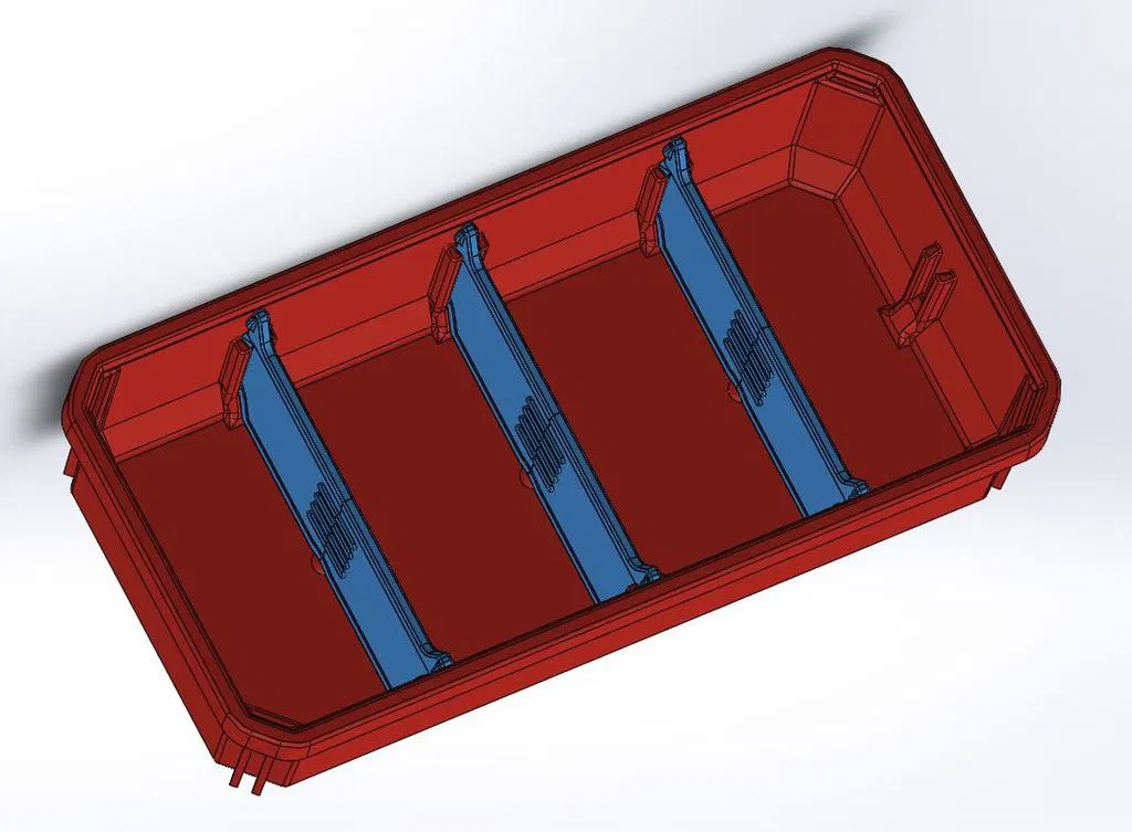 Vậy nên, mình copy lại khay chữ nhật, đồng thời dời các rãnh gắn vách ngăn để nó có thể chia thành 4 phần theo trục ngắn, và cũng có thể chia đôi theo trục dài. Nhờ vậy nó cũng chia được đủ kiểu khác nữa, nên mình cũng làm thêm nhiều loại vách ngăn cho nó.
